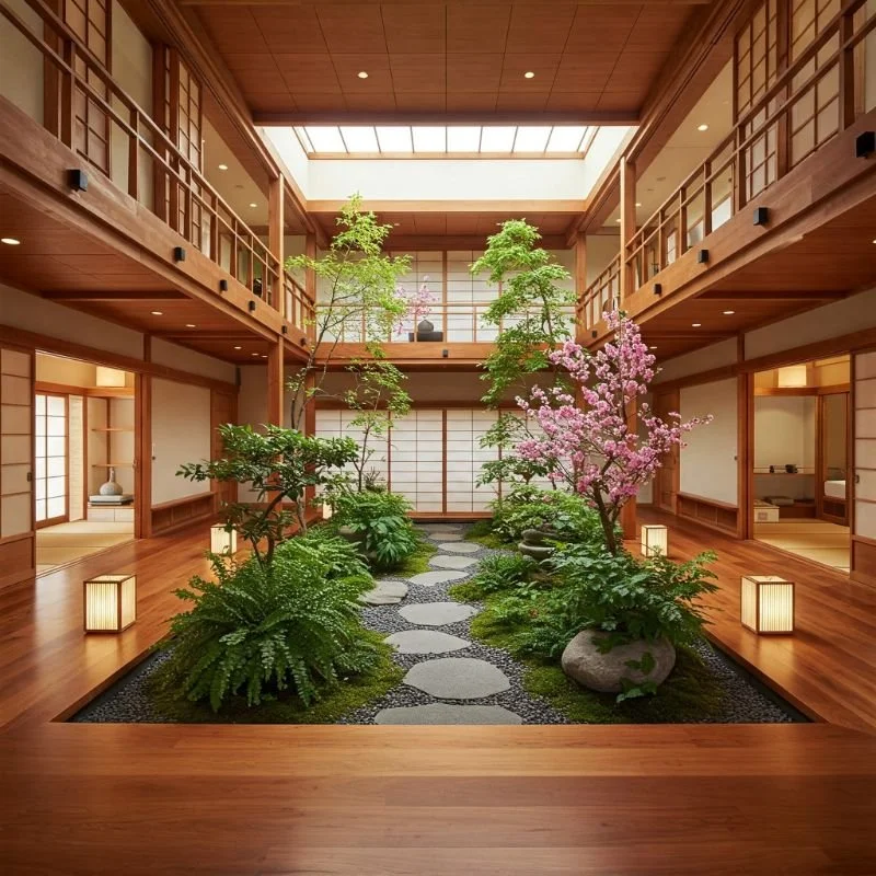 Integrating an indoor garden into your space is a perfect way to bring the tranquility of nature inside. In a Japanese-inspired home, a small indoor garden or a collection of bonsai trees can serve as a living accent that breathes life and vitality into the room. Imagine a serene corner where carefully pruned bonsai stand as symbols of patience and natural beauty, or a collection of potted plants arranged artfully to mimic a miniature landscape. These green elements create a visual and sensory connection to the natural world, infusing your space with a sense of calm and renewal. Indoor gardens not only purify the air but also serve as gentle reminders of the cycle of life and the beauty of simplicity. The organic shapes and textures of plants contrast beautifully with minimalist decor, creating a balanced and harmonious environment.