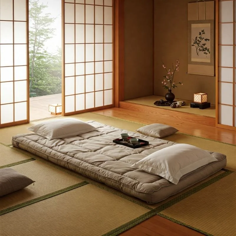 In Japanese interiors, futon beds are celebrated for their versatility, comfort, and minimalistic charm. Unlike traditional bulky beds, futons are lightweight, easily stored, and can be transformed from a cozy sleeping area into a flexible living space during the day. Imagine rolling out a soft futon on a tatami mat, ready to envelop you in its gentle embrace as night falls. This multi-functional piece embodies the essence of Japanese minimalism—simplicity, practicality, and comfort in one elegantly designed package. Futon beds also allow for a more fluid use of space, freeing up room for other essential elements in your home. Their understated design creates a calm, uncluttered atmosphere, inviting restful sleep and peaceful dreams.