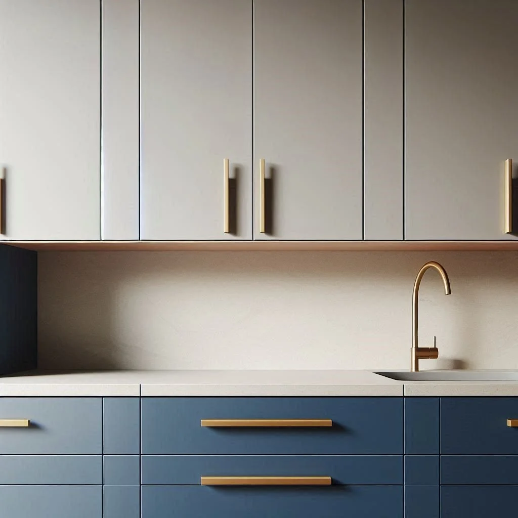 Why stick to a single color when you can create a stunning visual impact with two-toned cabinets? This design approach adds depth and personality to your kitchen, making it stand out from the ordinary. A popular combination is pairing navy blue lower cabinets with crisp white uppers. The dark navy base grounds the space with richness and sophistication, while the white upper cabinets keep the kitchen feeling light and airy. This balanced contrast works beautifully in both modern and traditional settings, offering a bold yet harmonious aesthetic. You can enhance the look further with complementary hardware—think brushed brass for warmth or sleek black for a contemporary edge. Two-toned cabinets allow you to play with color and texture, giving your kitchen a unique and dynamic vibe that reflects your personal style.