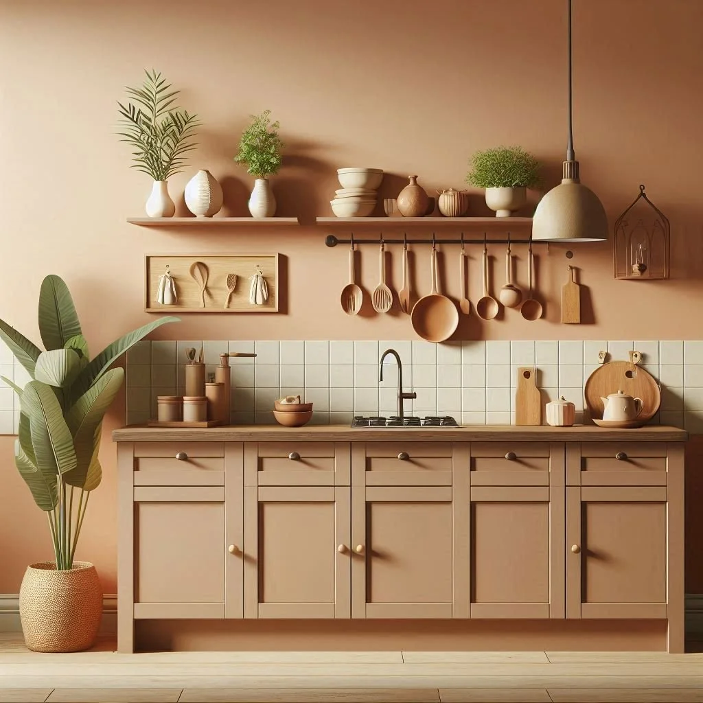 Terracotta cabinets infuse your kitchen with warmth and an earthy charm that feels both inviting and stylish. The rich, burnt-orange tones create a cozy atmosphere, making the space feel grounded and welcoming. These cabinets pair beautifully with natural wood accents, such as countertops or shelving, enhancing the organic vibe. To elevate the look, incorporate brass finishes on hardware or light fixtures, which add a touch of sophistication while complementing the warm tones. Terracotta cabinets work well in a variety of kitchen styles, from rustic farmhouse to eclectic modern, offering versatility and timeless appeal. Whether you’re going for a bold statement or a subtle nod to nature, this color choice brings depth and personality to your kitchen, turning it into a space that radiates comfort and elegance.