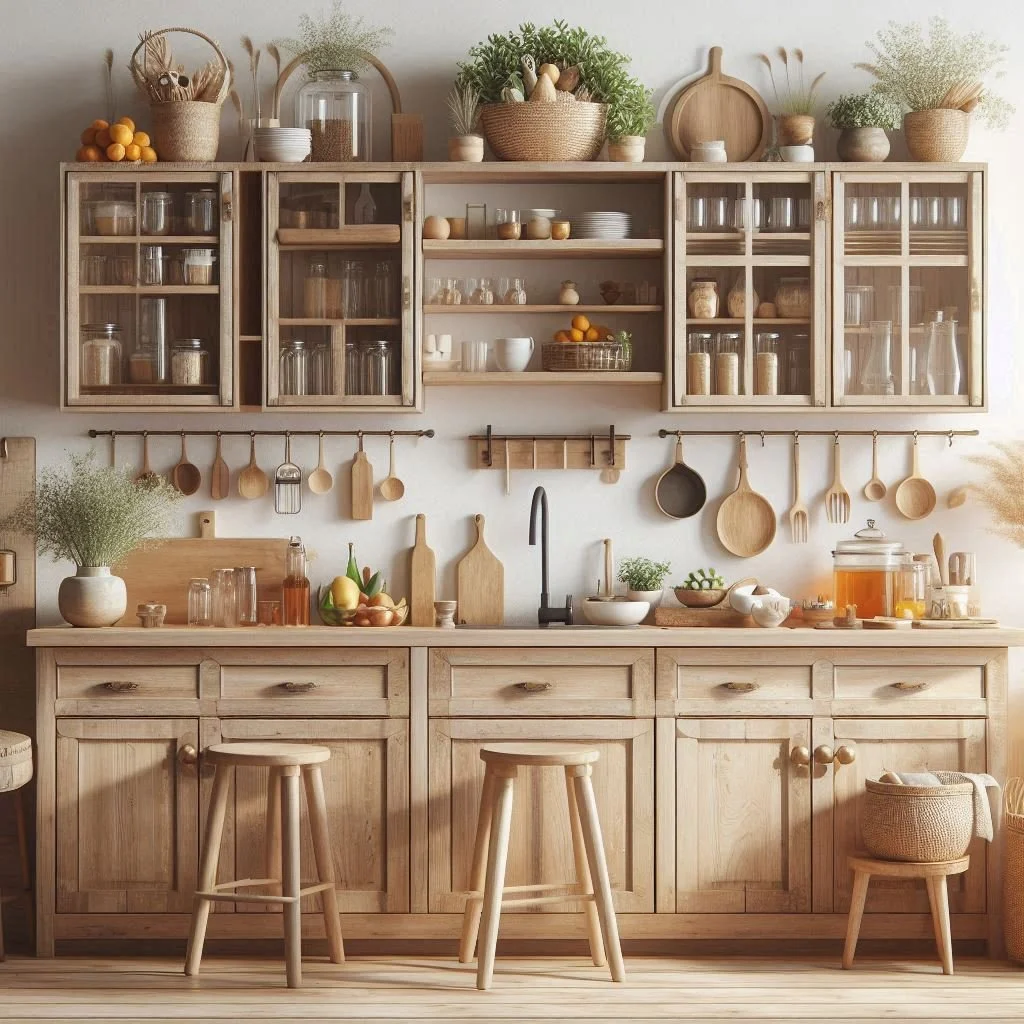 Natural wood cabinets are a timeless choice that effortlessly combines warmth and texture with enduring style. Whether you lean toward the bright, airy feel of light oak or the rich, dramatic tones of dark walnut, wood cabinets bring a natural beauty to any kitchen. Their organic grain patterns and earthy hues add depth and character, making them a versatile option for various design aesthetics. Pair natural wood cabinets with sleek hardware in matte black or brushed metal for a rustic-modern vibe that feels both grounded and contemporary. Light wood pairs beautifully with white or neutral countertops for a fresh, clean look, while darker woods create striking contrast against marble or lighter finishes. Durable and visually appealing, natural wood cabinets adapt to evolving trends, ensuring your kitchen remains inviting and stylish for years to come.