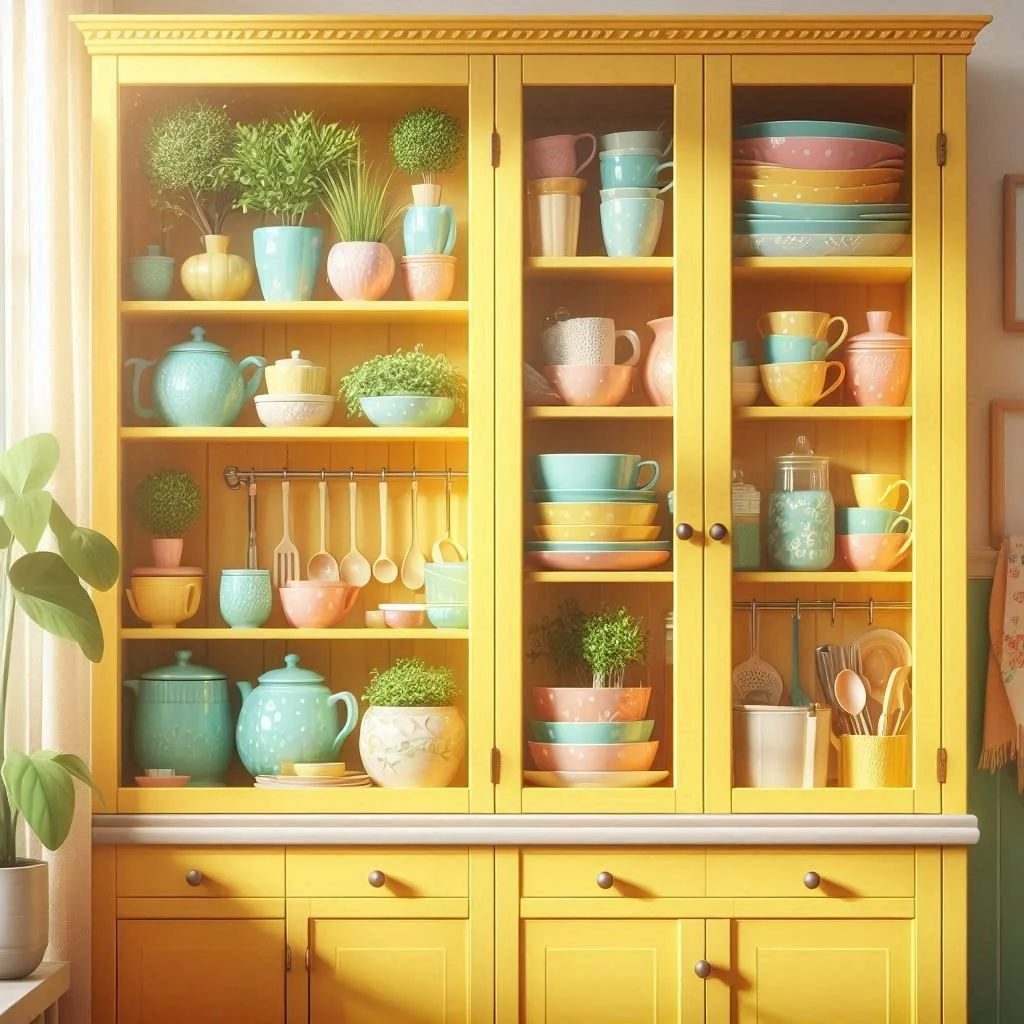 Sunny yellow cabinets are the perfect way to infuse your kitchen with warmth and positivity. This cheerful hue instantly brightens the space, creating an inviting atmosphere that feels full of life. Whether you opt for a soft pastel shade or a bold golden tone, yellow cabinets bring a sense of energy and joy to your kitchen. To keep the look balanced, pair them with neutral accents like white countertops, light wood finishes, or soft grey backsplashes. Metallic hardware, such as brushed nickel or matte black, adds a modern touch while complementing the vibrant yellow. This color choice is ideal for homeowners who want to make a bold statement while maintaining a welcoming vibe. With sunny yellow cabinets, your kitchen becomes a space that radiates charm and optimism, perfect for cooking, entertaining, and everyday living.