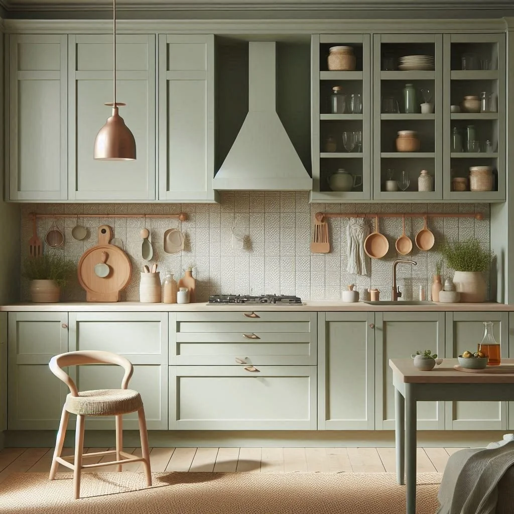 Soft sage green cabinets are a beautiful way to bring the tranquility of nature into your kitchen. This muted, earthy tone exudes calmness and serenity, creating a welcoming and peaceful atmosphere. Perfect for homeowners who love a subtle, nature-inspired aesthetic, sage green blends seamlessly with various design elements. Pair these cabinets with wooden countertops to enhance the natural vibe, or opt for natural stone finishes like marble or quartz to add a touch of sophistication. The versatile shade works well in both modern and traditional kitchens, providing a gentle pop of color without overwhelming the space. Sage green also pairs beautifully with brass or matte black hardware, offering a polished and cohesive look. Whether your kitchen is large or small, this soothing color choice creates a timeless, fresh, and harmonious design that feels like a breath of fresh air.