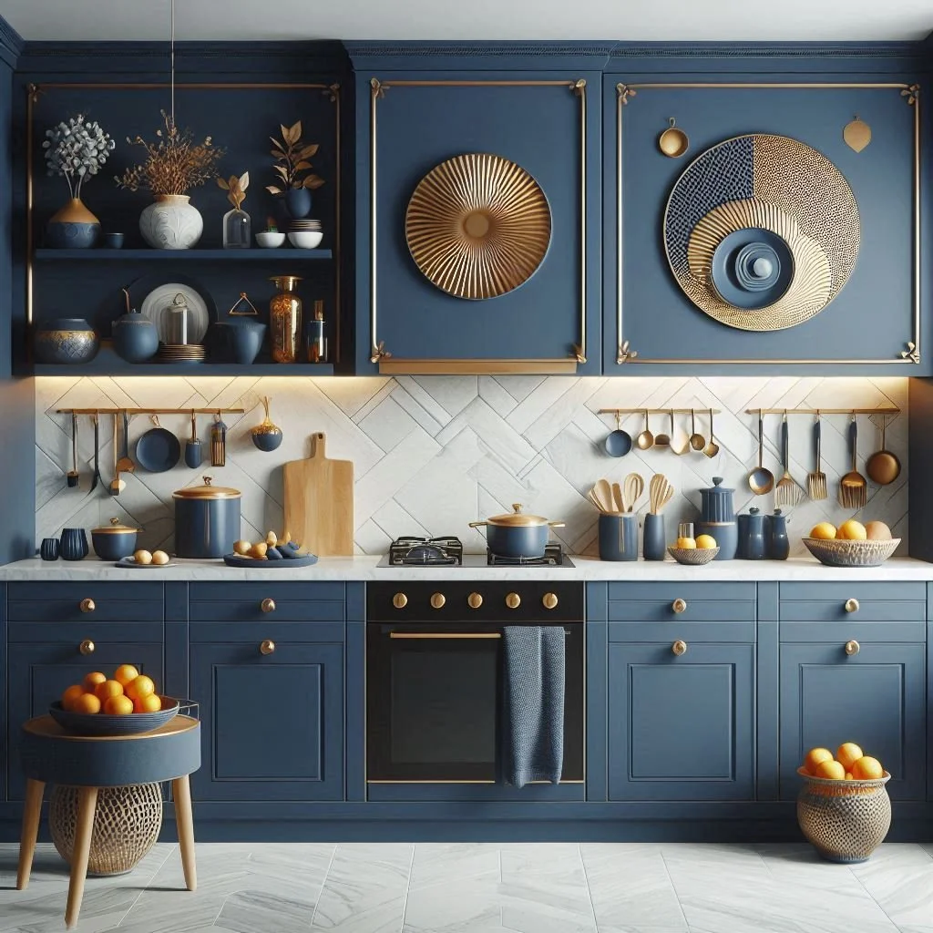 Navy blue cabinets bring a sense of sophistication and timeless elegance to any kitchen. The deep, rich hue creates a dramatic focal point while adding depth and character to the space. When paired with brass accents like handles or light fixtures, navy cabinets exude a luxurious vibe that feels both modern and classic. To balance the bold color, white countertops offer a crisp, clean contrast, brightening the overall look and enhancing the room’s visual appeal. This combination is perfect for homeowners seeking a refined yet inviting kitchen design. Whether you have a small kitchen that needs a bold touch or a larger space that can handle rich tones, navy cabinets elevate the aesthetic effortlessly. Add complementary decor like gold or white details to complete the polished look. Navy blue is an ideal choice for kitchens aiming to blend elegance with modern charm.