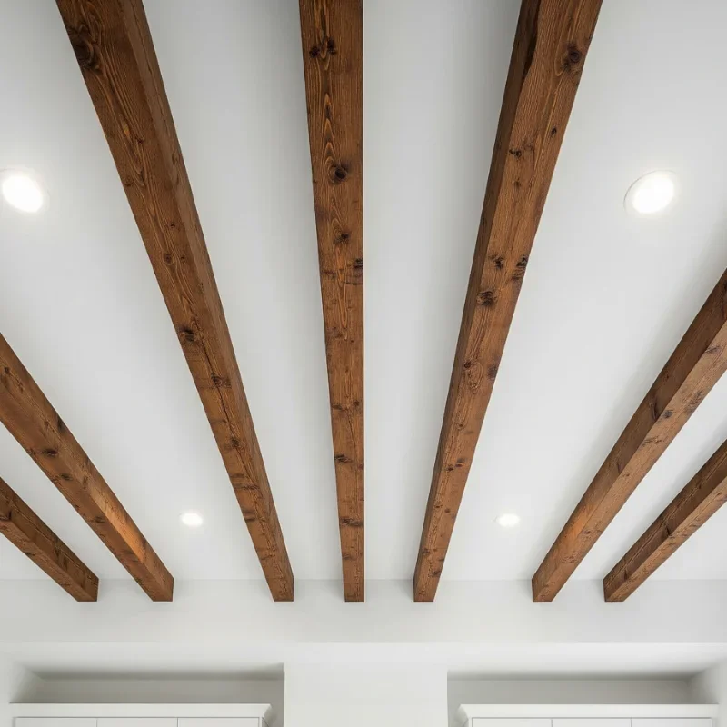 Bring rustic charm and structural beauty to your kitchen with exposed wooden beams that tell a story of craftsmanship and natural materials. Whether you're working with existing beams or adding decorative ones, these architectural elements create instant character! Real wooden beams from reclaimed barns or old buildings add authentic history and unique patina. Faux beams made from lightweight polyurethane look remarkably real while being easier to install and maintain. The contrast between smooth ceiling surfaces and rough-hewn beams creates textural interest that engages multiple senses. Arrange beams parallel for a traditional look or create geometric patterns for modern appeal. Stain them dark for dramatic contrast or leave them natural for Scandinavian simplicity. The vertical dimension they add makes low ceilings feel higher and large kitchens feel cozier. Your cooking space becomes a warm, inviting haven that feels like it's been loved for generations.