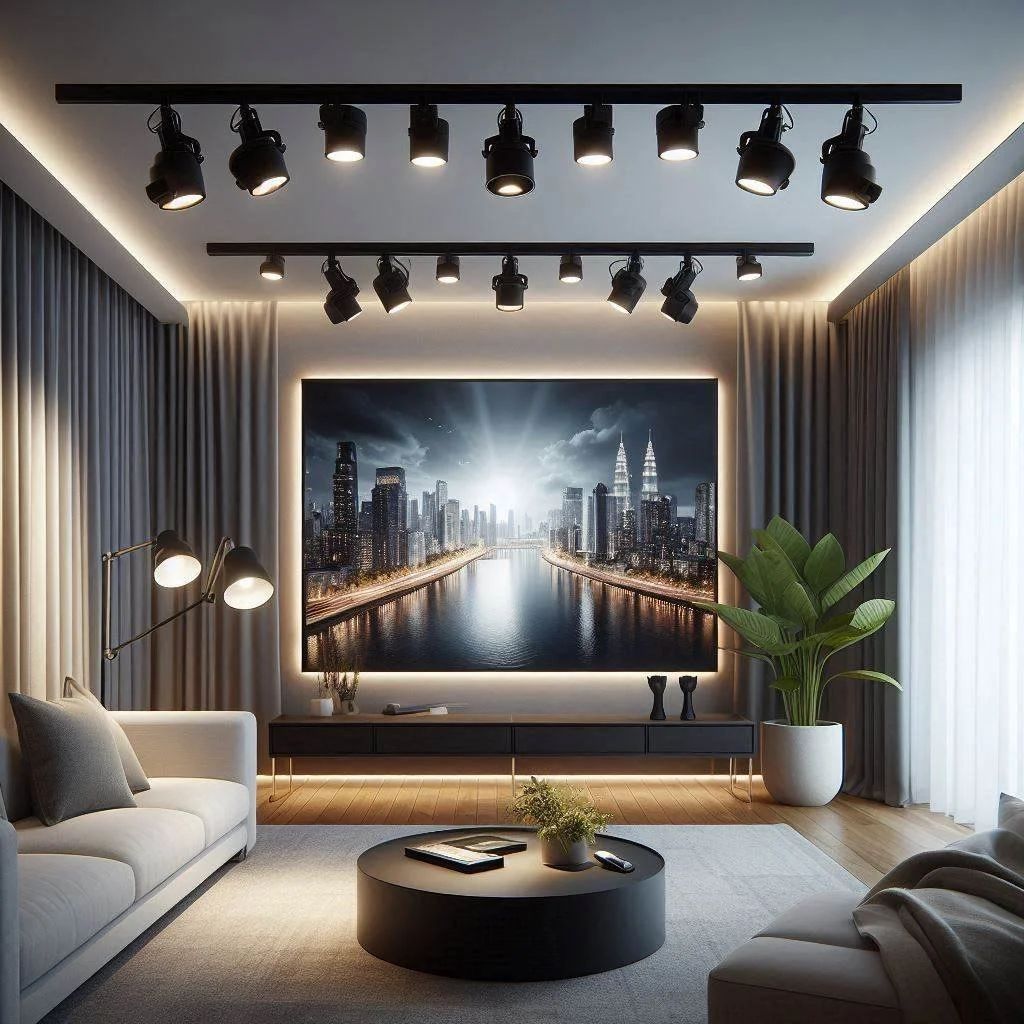 Transform your living room into a gallery-like space with LED spotlights. These versatile lights are perfect for accentuating artwork, sculptures, or other decorative elements, bringing them into focus and creating a dynamic visual display. By directing the spotlights on key pieces, you add depth and highlight their details, making your living room feel like a curated exhibition. This approach not only enhances the aesthetic appeal of your space but also allows you to showcase your favorite items with a touch of sophistication. The precise, adjustable nature of LED spotlights ensures that your art and decor shine in the best light, turning your living room into a stylish and personalized showcase.