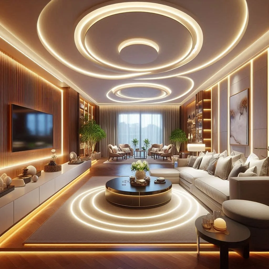 LED lights are energy-efficient, long-lasting, and versatile. They come in various styles and can be customized to fit your space, making them perfect for modern living rooms.