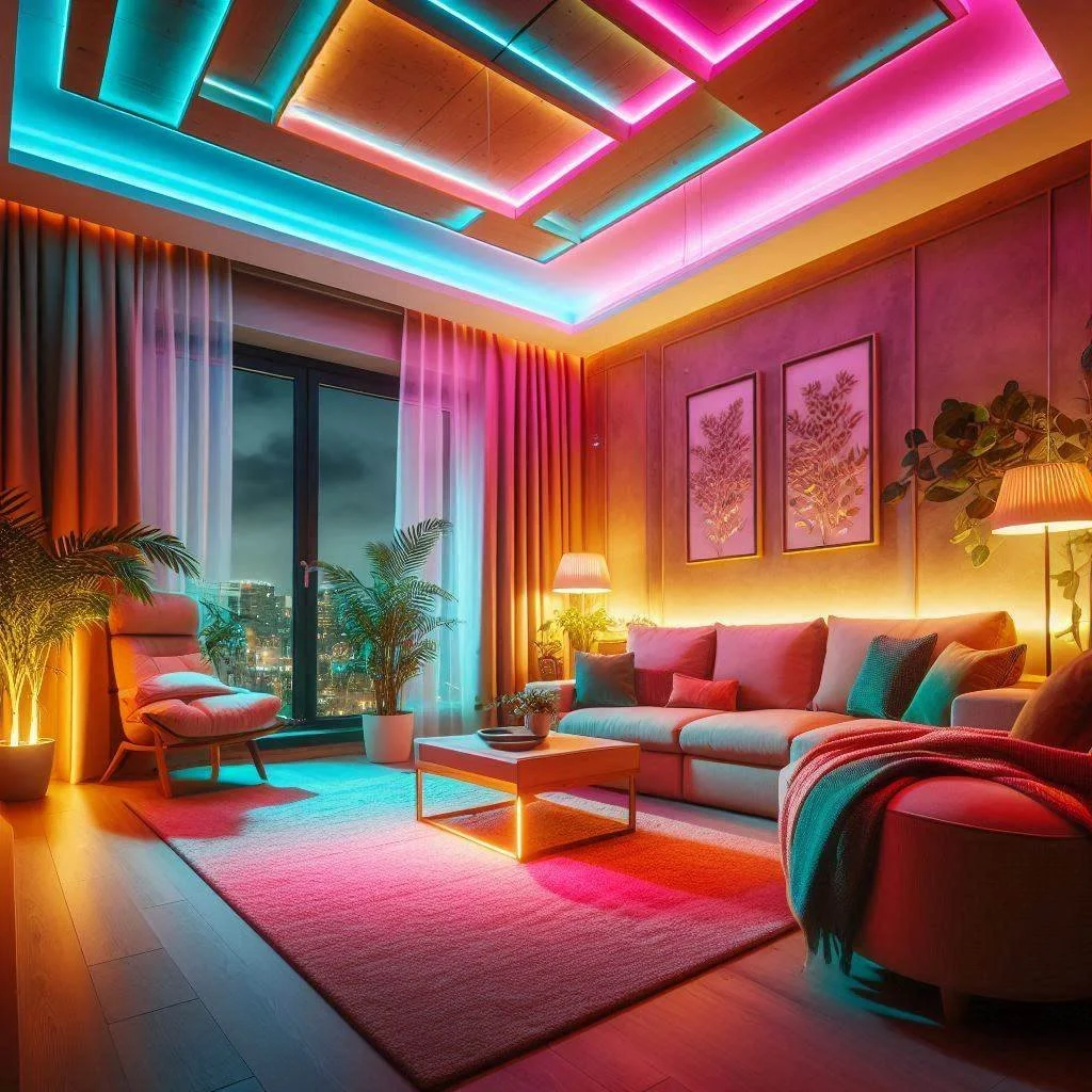 Color-changing LEDs come with remote controls or apps that let you switch between different colors and light intensities. They’re perfect for creating dynamic living room environments.