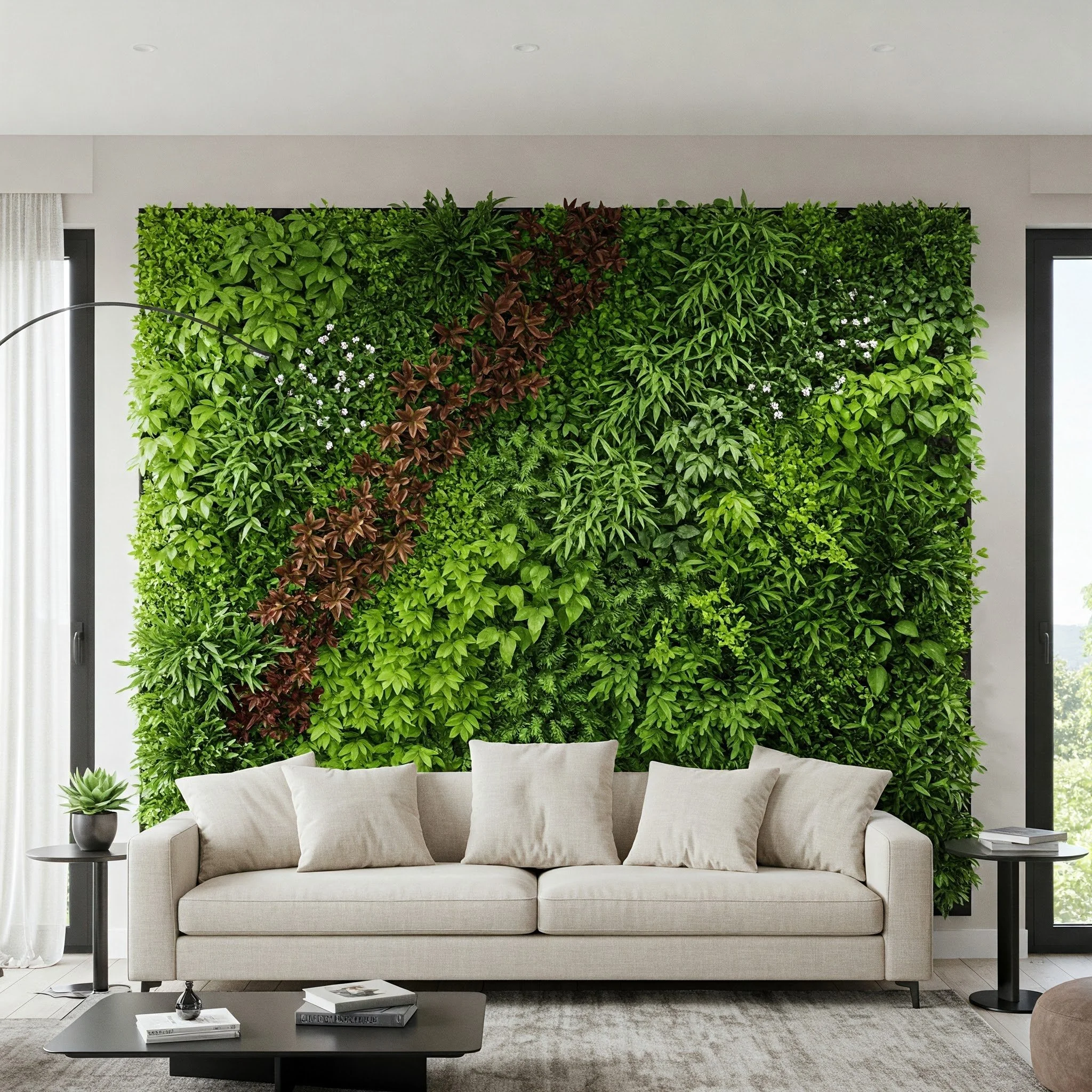 Who says walls are just for paint and wallpaper? A living wall—featuring real or faux greenery—injects a burst of nature right into your living room. Think vertical gardens of lush ferns, trailing ivy, or even succulents if you’re all about low maintenance. Real plants improve air quality and add a refreshing aroma, but faux versions can look equally striking if you’re short on time or worried about upkeep. Use a modular system to position plants in eye-catching patterns, or keep it simple with a well-structured arrangement. Pair this nature-inspired backdrop with neutral furniture and natural textures like rattan or jute for an organic, bohemian feel. A green living wall is more than an accent—it’s a breath of fresh air, quite literally.