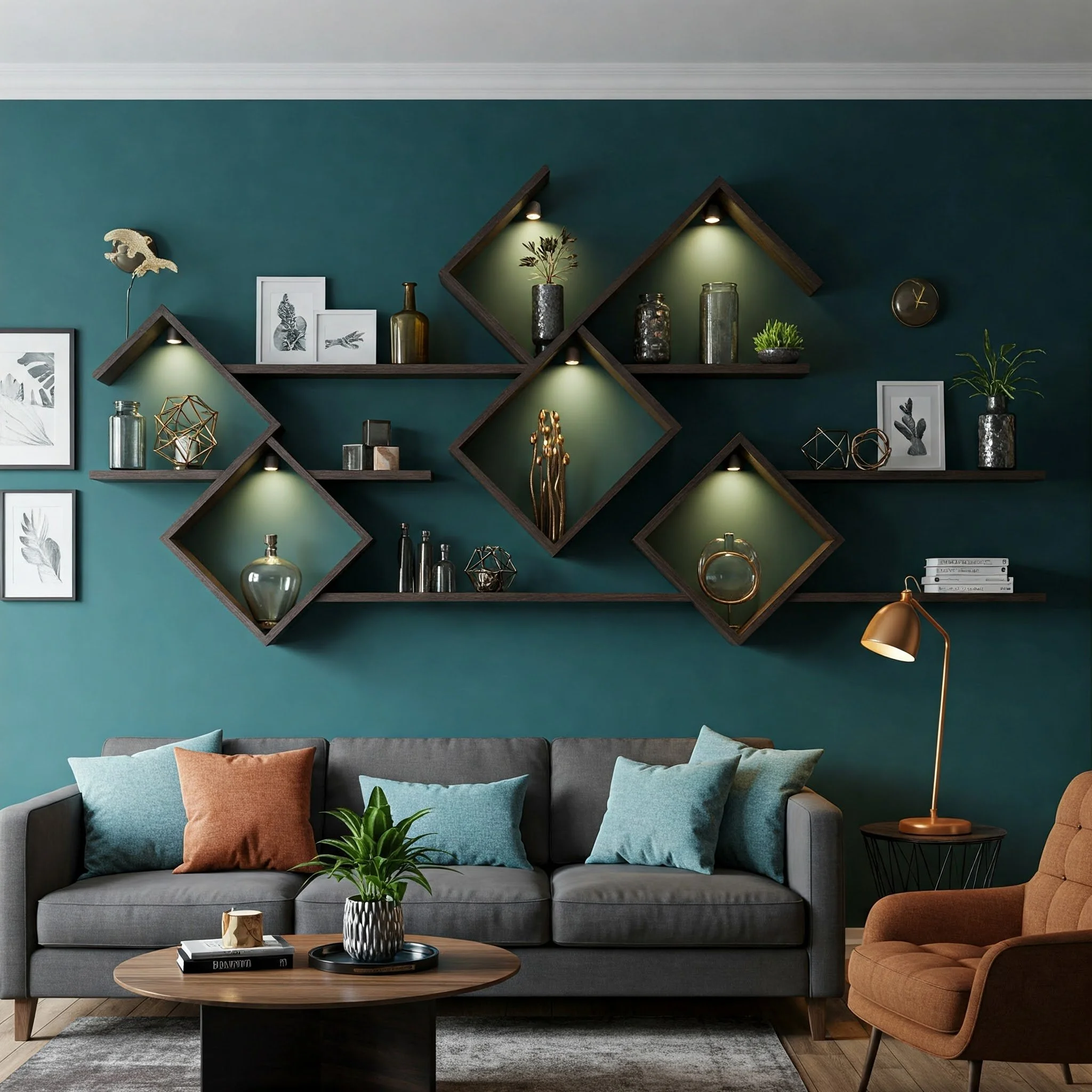 An accent wall doesn’t have to be all paint and texture; sometimes function and form can coexist beautifully. Installing built-in shelves or floating ledges lets you showcase décor, books, or cherished knickknacks in a way that doubles as a statement. Paint the shelving backdrop in a contrasting color—like a bold teal behind crisp white shelves—for instant drama. You could also stagger multiple shelves at varying heights, creating a playful composition. It’s like turning your accent wall into a personal gallery, where each item tells part of your story. Mix in framed photos, decorative plants, or sculptures for added layers of interest. With creative display shelving, your accent wall becomes an ever-changing tapestry of memories and style, reflecting who you are while maintaining a bold, cohesive look.