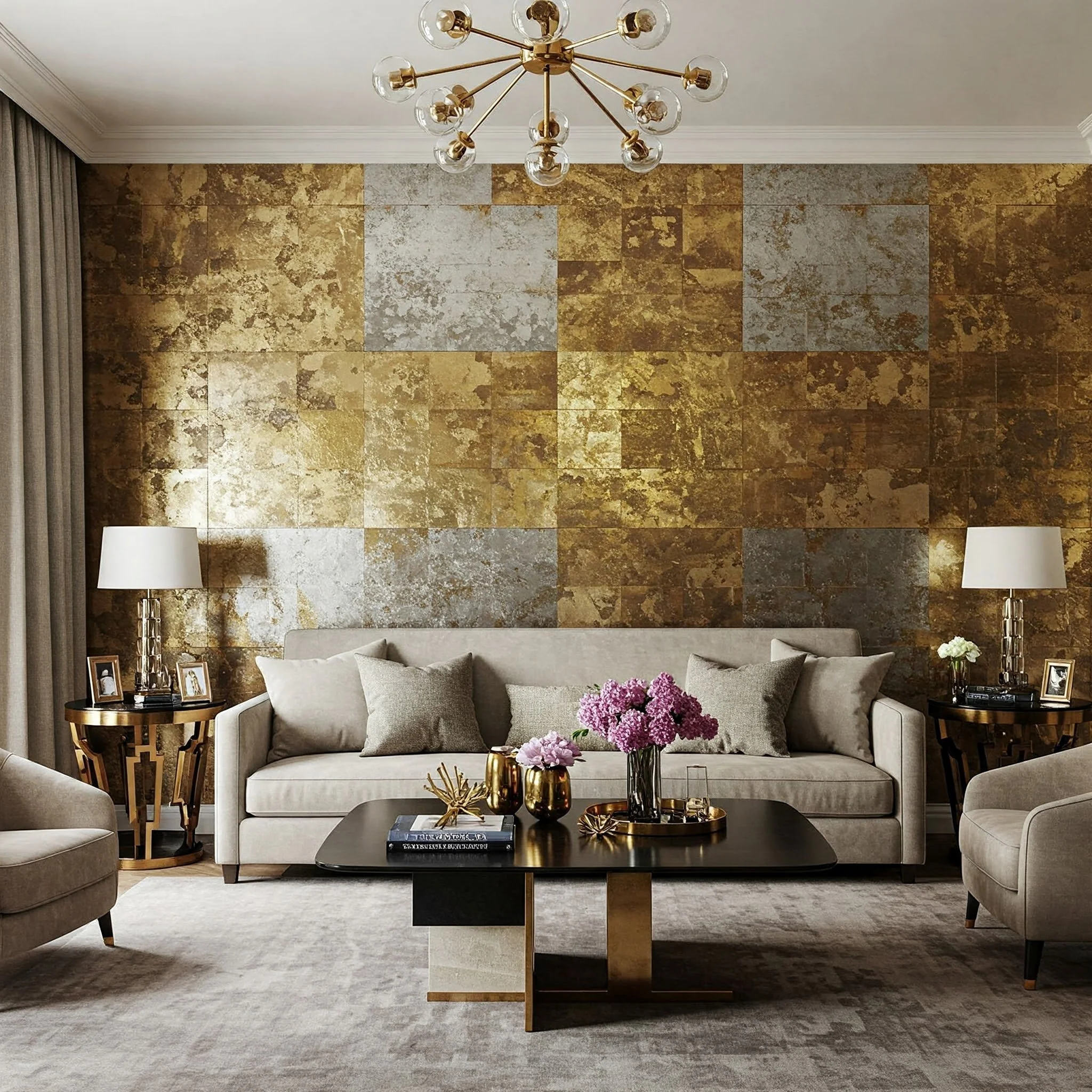 Got a taste for the finer things in life? Then a metallic accent wall might just be your interior design soulmate. Sleek finishes in gold, silver, bronze, or even rose gold can reflect light in mesmerizing ways, adding a sense of luxury without feeling over-the-top. Think about gilded wallpaper with subtle damask patterns or even textured metallic paint that shimmers like a distant galaxy. The reflective quality can also help your living room appear brighter and more spacious. Complete the look with velvet throw pillows and glass coffee tables to double down on elegance. Whether you prefer an all-out glittering effect or something more understated, metallic accents effortlessly merge glamour with everyday comfort. It’s like slipping on a designer watch—sophisticated but totally wearable for any occasion.