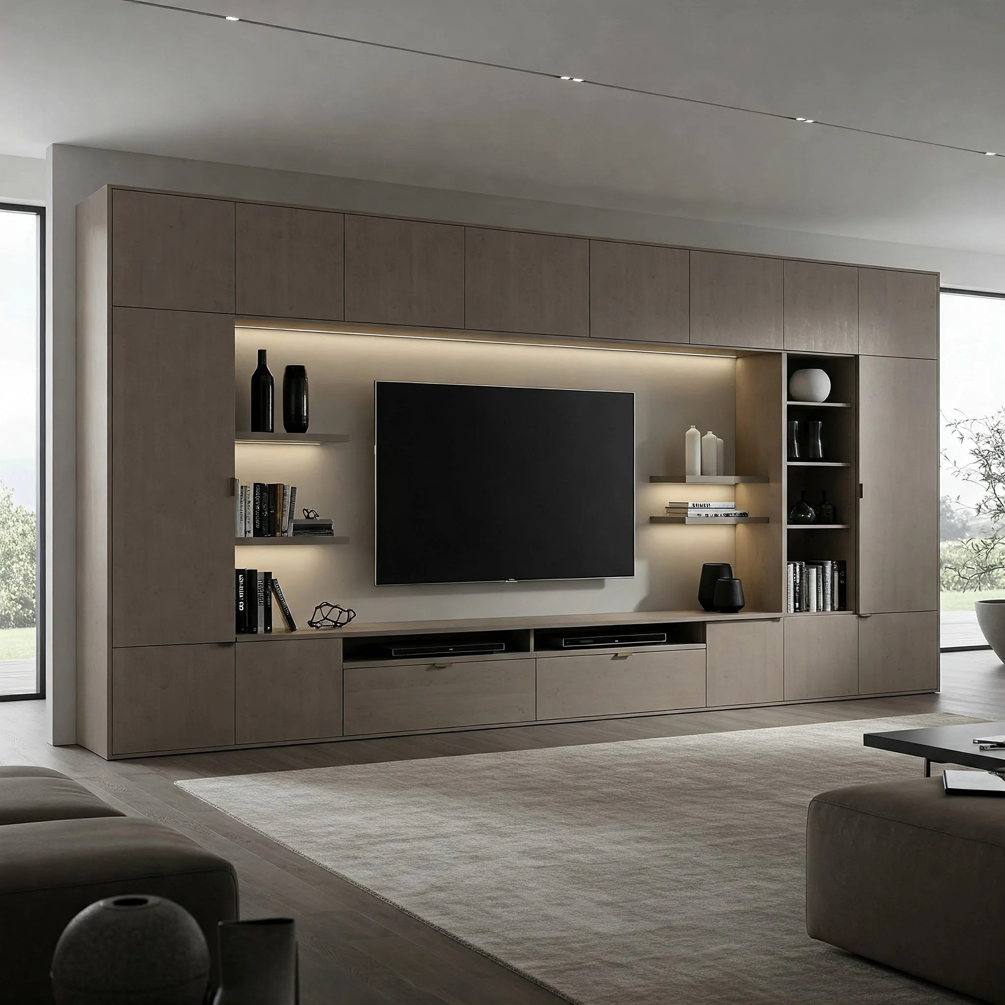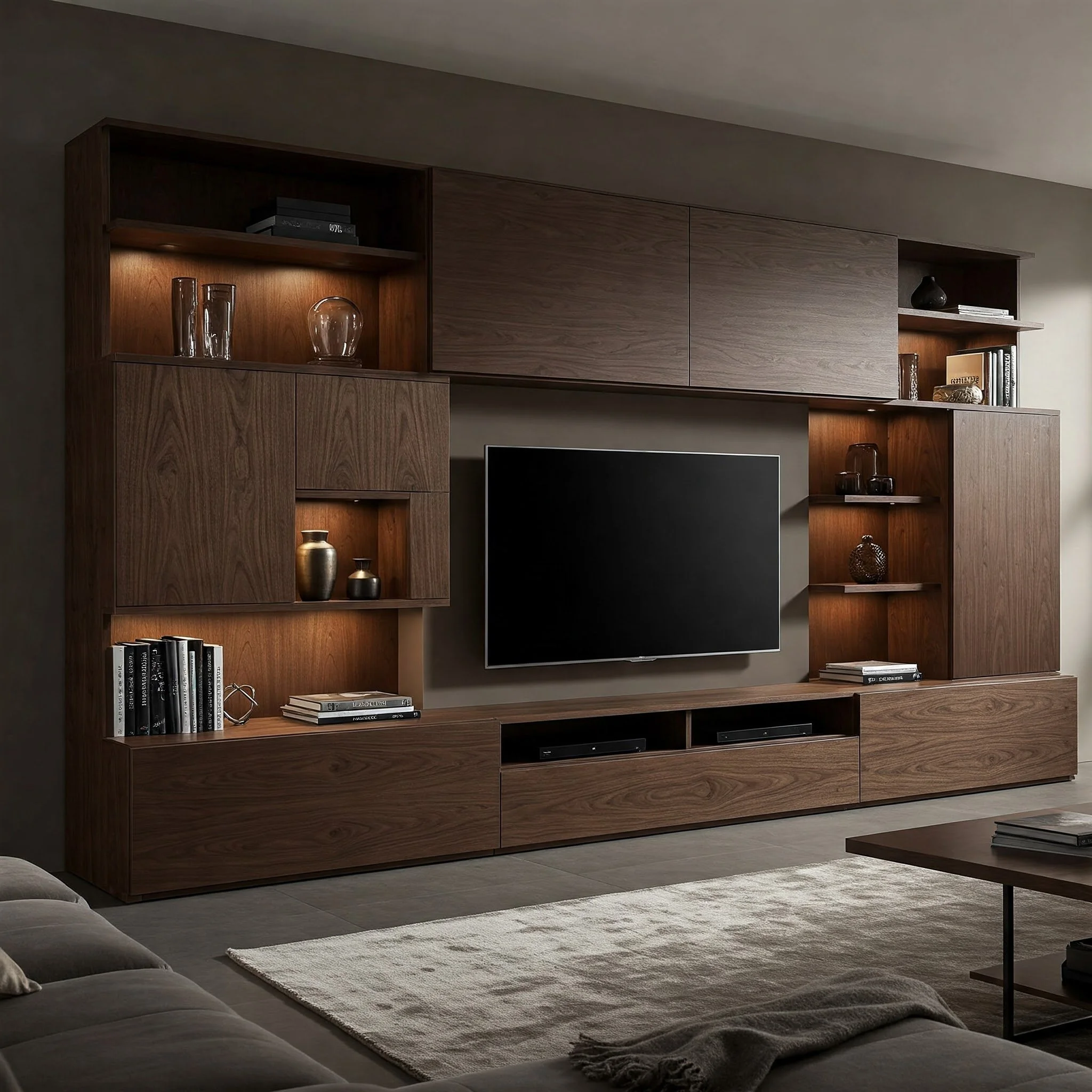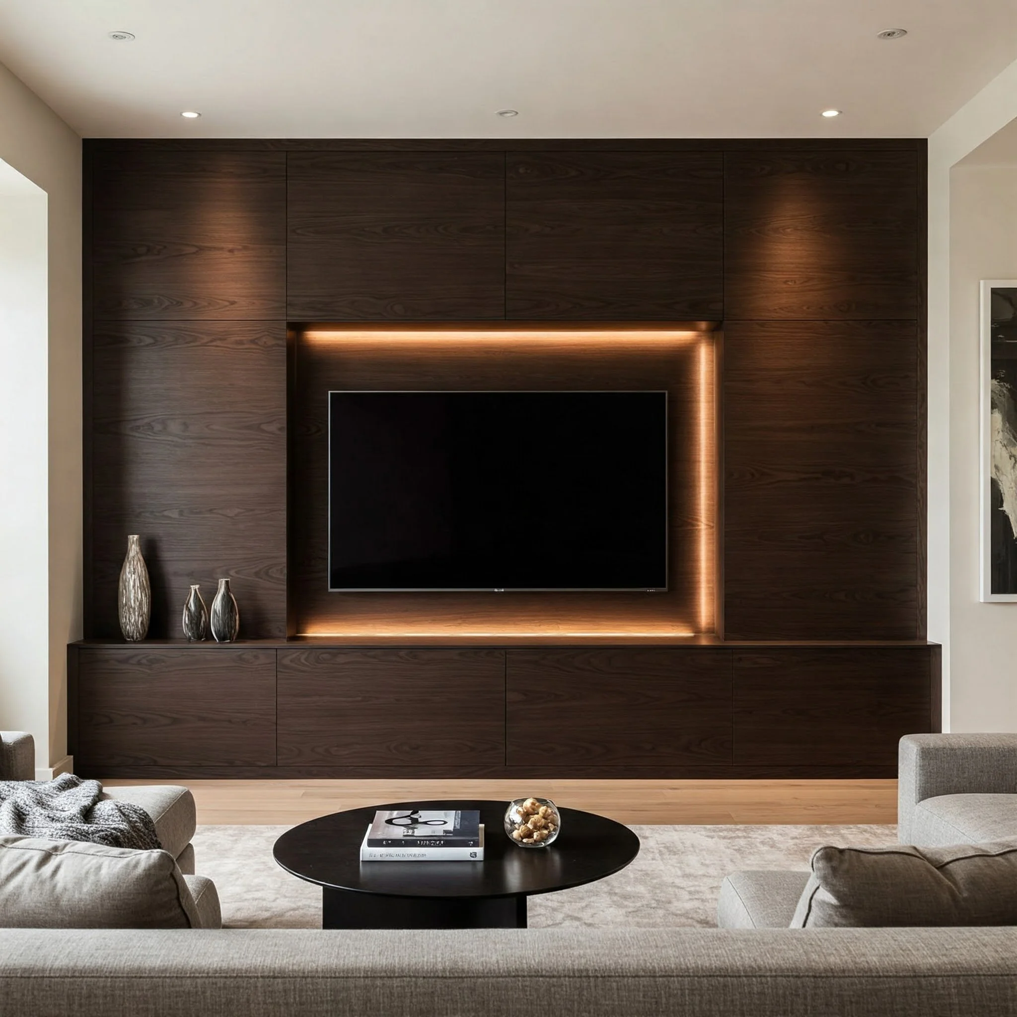 Imagine a built-in TV wall that not only entertains but also interacts with your smart home ecosystem. Smart home integrated walls take technology to a new level by incorporating features like voice control, smart lighting, and wireless connectivity right into the design. These walls are designed with built-in sensors and control panels, allowing you to manage your media, lighting, and even climate settings with a simple command. The seamless integration of smart devices ensures that every element of your living room works in harmony, creating a futuristic and efficient space. The design can be customized to suit various lifestyles, whether you’re a tech enthusiast or someone who appreciates the convenience of automated living. This approach makes your TV wall the central hub of your smart home, elevating both functionality and style.