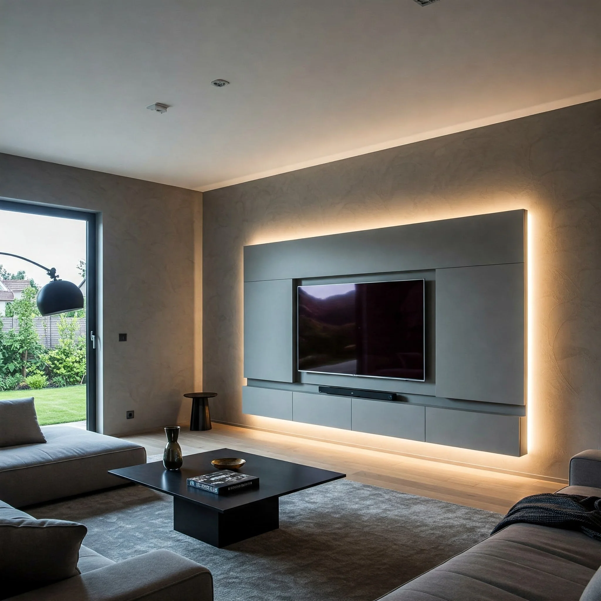 For those who crave a sleek, modern look, recessed TV wall panels are a game changer. This design involves embedding the television into the wall itself, creating a flush, streamlined appearance that effortlessly integrates into your living space. The recessed area can be accented with soft lighting or decorative paneling, which further enhances the minimalist appeal. Not only does this method save space, but it also reduces visual distractions, allowing your TV to become a natural focal point. The clean lines and integrated look of recessed panels evoke a sense of calm and order, ideal for contemporary interiors. This solution is perfect for homeowners who appreciate a modern aesthetic, where every detail is carefully considered to create a seamless, immersive viewing experience.
