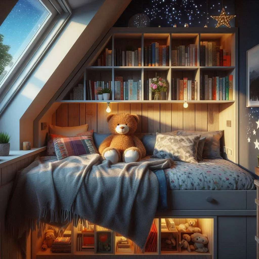 If you’re a book lover, a loft bed with a built-in bookshelf is the perfect way to combine storage and style. This design keeps your favorite reads within arm’s reach, making it easy to grab a book anytime while relaxing in bed. The shelves also provide space for decorative items, such as plants, framed photos, or personal trinkets, allowing you to add a unique touch to your room. This setup not only helps you stay organized but also transforms your loft bed into a cozy, personalized retreat. Whether you store novels, journals, or collectibles, the built-in bookshelf enhances both functionality and charm. Ideal for small spaces, it maximizes vertical storage without taking up extra floor space. A loft bed with shelving is perfect for book lovers who want to display their collection while maintaining a neat and stylish living area.