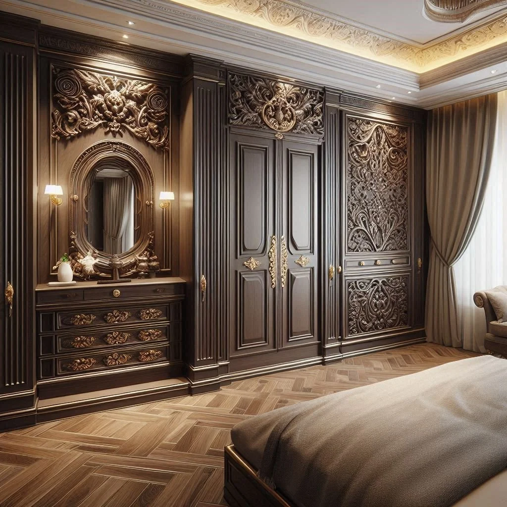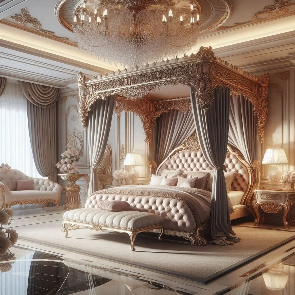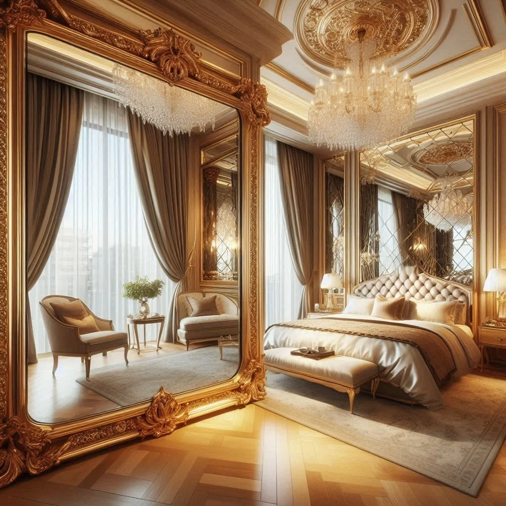 Mirrors are more than just practical—they're versatile design elements that can elevate the style of any bedroom. A large mirror with an ornate frame instantly adds a touch of glamour, becoming a statement piece that draws the eye. For smaller spaces, strategically placed mirrors reflect light, creating the illusion of a larger, brighter room while enhancing the overall ambiance. Mirrored furniture, such as nightstands or dressers, introduces a subtle sparkle and elegance, adding a modern twist to classic luxury. These reflective surfaces not only brighten the space but also complement other decorative elements, making the room feel cohesive and polished. Whether used for functionality, decoration, or both, mirrors are a powerful tool in creating a luxury bedroom that feels spacious, stylish, and full of charm. Their ability to blend practicality with sophistication makes them a must-have in any elegant design.