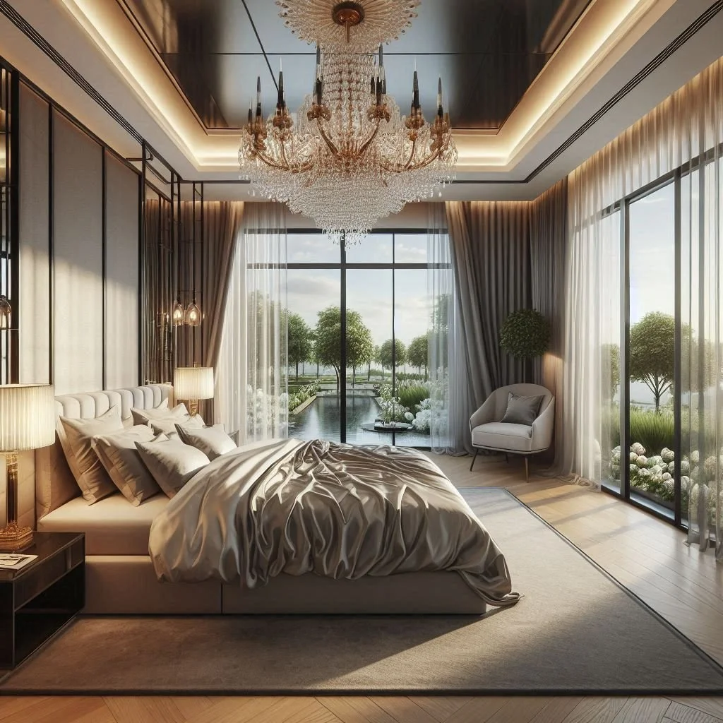 Creating the perfect ambiance is key to a luxury bedroom, and lighting plays a pivotal role in achieving it. Start by incorporating elegant ceiling fixtures, such as chandeliers or pendant lights, to establish a focal point and provide overall illumination. Complement these with bedside lamps or wall sconces for layered lighting that adds depth and functionality. To enhance the versatility of your space, install dimmer switches, allowing you to adjust the brightness to suit any mood—whether it’s a soft, inviting glow for relaxation or brighter lighting for reading and tasks. Thoughtful lighting choices not only enhance the room’s aesthetic but also contribute to its comfort and warmth. By blending statement fixtures with functional accents, you create a well-lit sanctuary that exudes sophistication and adapts effortlessly to your needs, making your bedroom a haven of both style and tranquility.