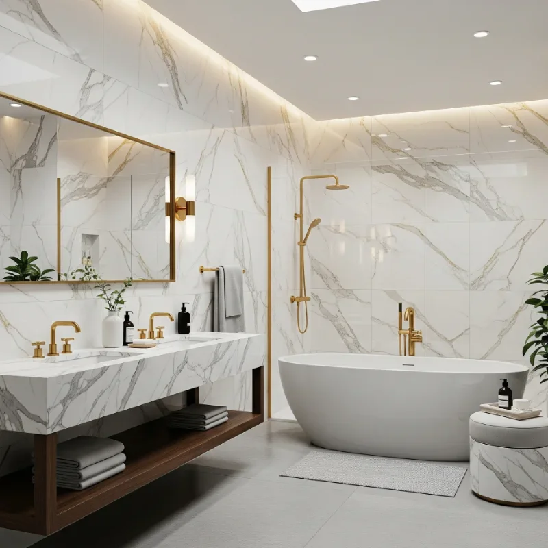Achieve marble dreams on real-world budgets with high-quality alternatives! Porcelain tiles now mimic marble so convincingly that even experts do double-takes. Large format porcelain reduces grout lines like real marble slabs. Quartz surfaces offer marble patterns with superior stain resistance. Luxury vinyl tiles provide marble looks with warm, comfortable surfaces. These alternatives often surpass real marble in practicality: no sealing, better durability, easier maintenance. Mix real marble accents with alternatives for budget balance. Technology improvements mean today's marble-looks capture veining, depth, and color variation beautifully. Don't apologize for choosing alternatives; celebrate smart design decisions. Your bathroom achieves marble's aesthetic impact without breaking the bank!