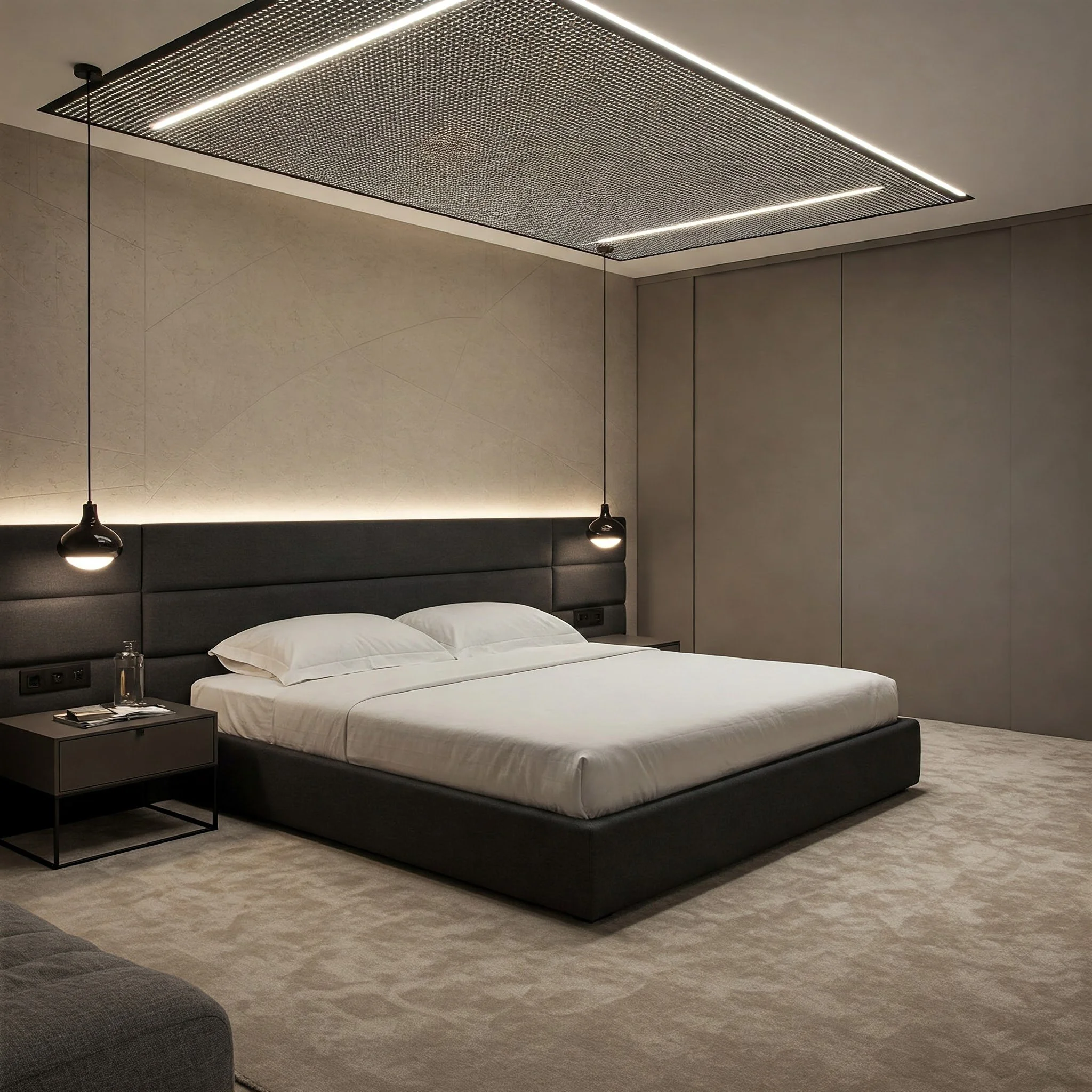 Lighting is a key element in setting the mood and enhancing the design of your bedroom. Ambient, task, and accent lighting all work together to create a warm, inviting atmosphere that highlights your design features and adds a futuristic touch to your space.