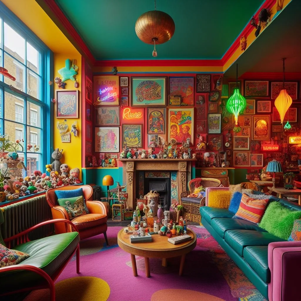 When working with bold colors and patterns in maximalist decor, consider the principles of balance and contrast. Pair vibrant hues with neutral tones to create a sense of harmony, and use patterns of varying scales to add visual interest without overpowering the space. Additionally, consider incorporating solid-colored anchor pieces to ground the room and provide a visual respite.