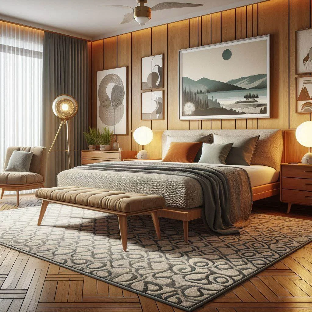 A well-chosen rug can be a defining feature in your mid-century modern bedroom, enhancing the overall aesthetic and adding a touch of warmth. Look for rugs with retro patterns, such as geometric shapes or abstract designs, that echo the era's distinctive style. Rich textures and bold colors can also play a crucial role in elevating the space. Persian or Oriental rugs, with their intricate patterns and vibrant hues, provide a striking contrast to the clean lines of mid-century furniture, creating a harmonious blend of tradition and modernity. By anchoring the room with a thoughtfully selected rug, you can tie together various design elements, making your bedroom both visually appealing and cozy.