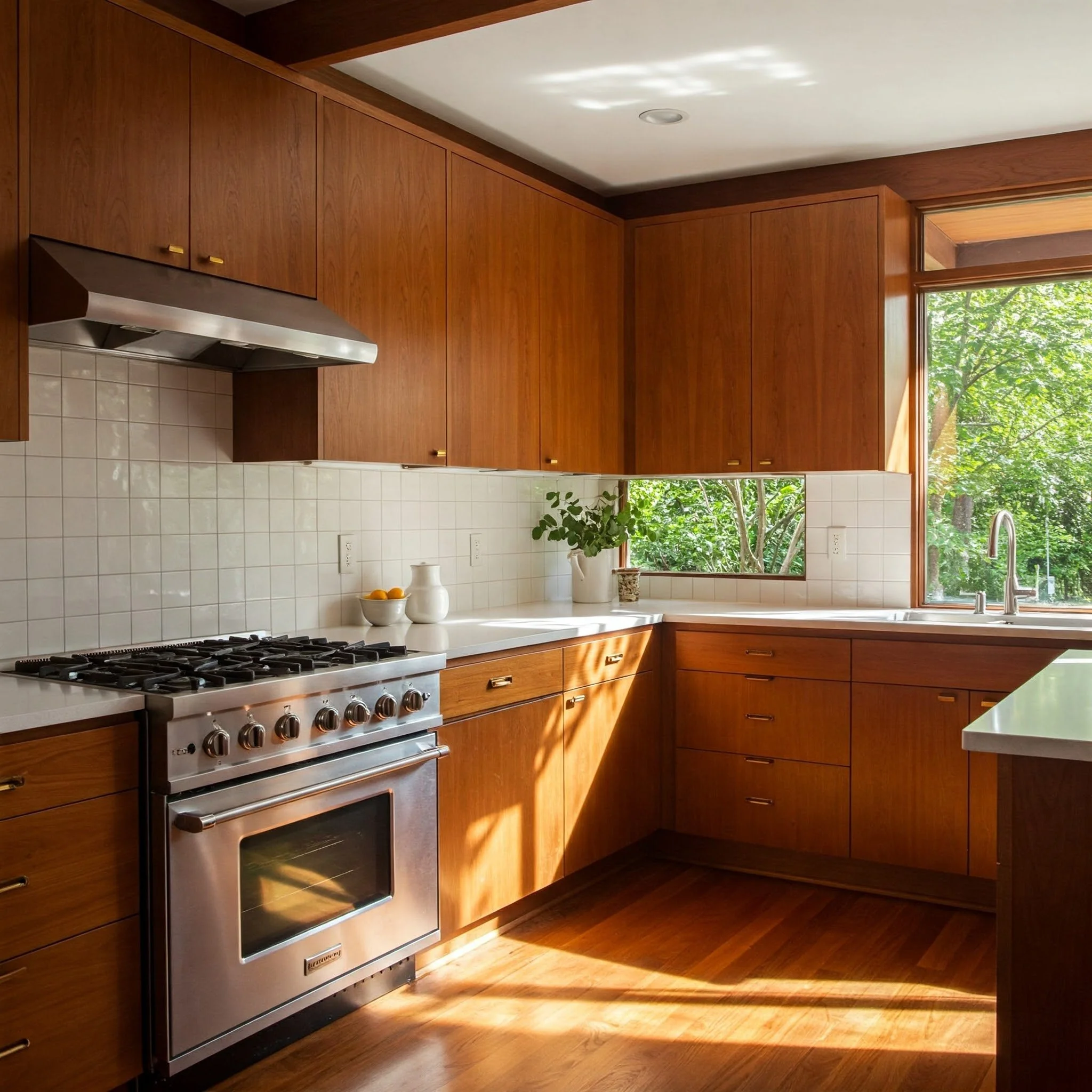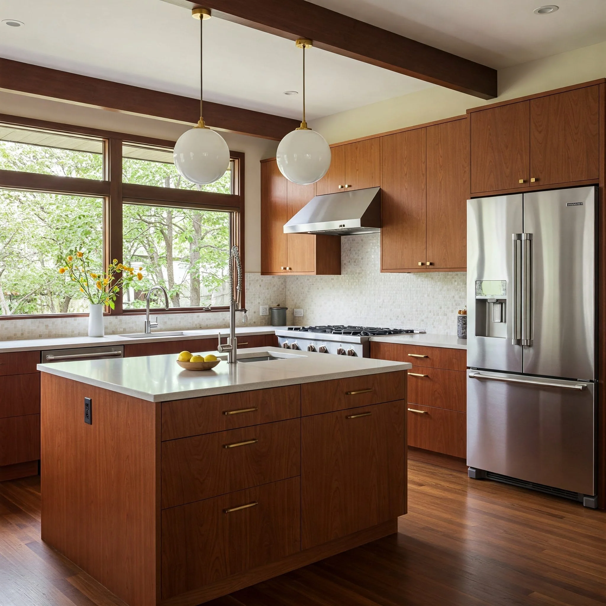 Mid-century modern design isn’t just about aesthetics—it also dovetails beautifully with eco-conscious choices. Many of the original mid-century principles centered on using quality, long-lasting materials like solid wood, which naturally stands the test of time. In today’s eco-focused world, consider opting for reclaimed timber for cabinetry or countertops, giving a second life to wood that might otherwise go to waste. Bamboo flooring or recycled glass backsplashes can also add a contemporary twist without losing that vintage flair. By blending sustainability with the classic lines and shapes of mid-century modern, you’re ensuring your kitchen remains relevant for decades. It’s a testament to the idea that “good design never goes out of style”—especially when it also respects the environment. So go ahead and create a space that’s both nostalgic and forward-thinking—your conscience will thank you.
