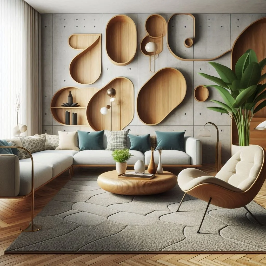 Mid-century modern design celebrates curves and organic shapes, bringing a sense of softness and balance to any space. Incorporate curved sofas, round coffee tables, or circular mirrors to introduce gentle lines that create a cozy, inviting atmosphere. These rounded forms complement the clean, angular silhouettes of other furniture, preventing the room from feeling too rigid. A curved sofa adds comfort and visual interest, while a round coffee table offers a practical yet stylish surface that encourages easy flow around the space. Circular mirrors not only enhance the design but also reflect light, making the room feel more open and airy. By blending these organic shapes with more structured elements, you achieve the perfect balance between elegance and comfort. This thoughtful mix creates a warm, welcoming environment that reflects the charm and timeless appeal of mid-century modern design.