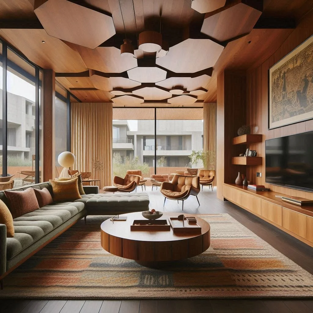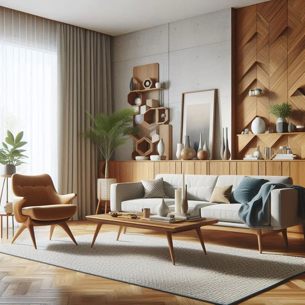 Geometric patterns are a hallmark of mid-century modern decor, bringing visual interest and a playful touch to the space. Incorporate these patterns through rugs, pillows, or wall art to infuse the room with character. Bold shapes like triangles, circles, and abstract designs capture the essence of the retro aesthetic while maintaining a modern appeal. A geometric rug can anchor the space, while patterned cushions add depth and texture to seating areas. Wall art featuring abstract motifs further enhances the design, creating focal points that tie the room together. These geometric elements balance the clean lines of mid-century furniture, adding energy and movement without overwhelming the space. Whether subtle or striking, incorporating patterns ensures that your decor feels dynamic and true to the mid-century vibe, creating a space that is both stylish and inviting.