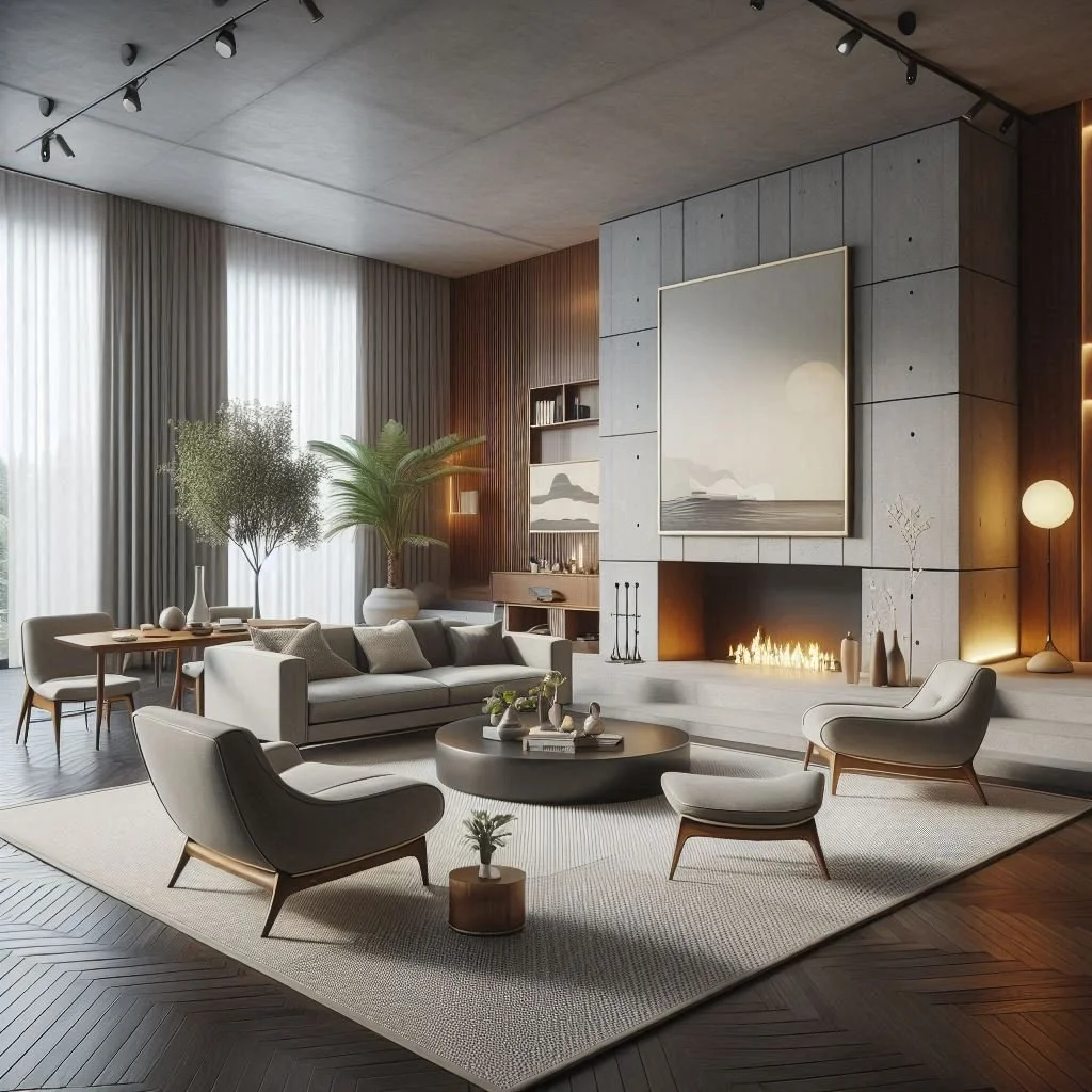 A fireplace can serve as a striking focal point in your living room, adding warmth and style. Choose a sleek, minimalist fireplace design that complements your mid-century modern decor, emphasizing clean lines and simplicity. A streamlined fireplace blends seamlessly with other elements, enhancing the room's overall aesthetic without overwhelming the space. Surround it with low-profile furniture, such as a modern sofa or lounge chairs, to maintain a cozy yet open feel. Adding a contemporary firewood rack nearby introduces both function and flair, reinforcing the mid-century vibe with practical elegance. Whether the fireplace is framed by smooth stone or painted brick, it becomes a central feature that draws attention and encourages relaxation. With the right design, your fireplace not only provides warmth but also enhances the inviting, effortless charm of your living room, making it a perfect place to gather and unwind.
