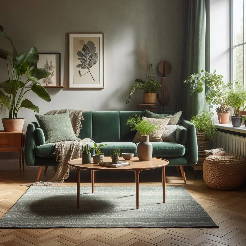 Plants are an essential feature in mid-century modern living rooms, bringing life, color, and natural beauty to the space. Incorporate large potted plants, such as fiddle leaf figs or monstera, to make a bold statement, or use smaller succulents for subtle accents. These plants not only freshen the air but also soften the clean lines typical of mid-century design, adding warmth and vibrancy. To enhance the theme, place your greenery in retro-inspired planters, such as ceramic pots with tripod stands or sleek metal containers. Arranging plants in various sizes and styles creates visual interest, complementing the room's overall aesthetic. Whether placed next to a low-profile sofa or on a wooden sideboard, these natural elements help tie the design together, giving the space a more relaxed and inviting feel. With the right mix of plants and planters, your living room will embody the charm and freshness of mid-century modern style.