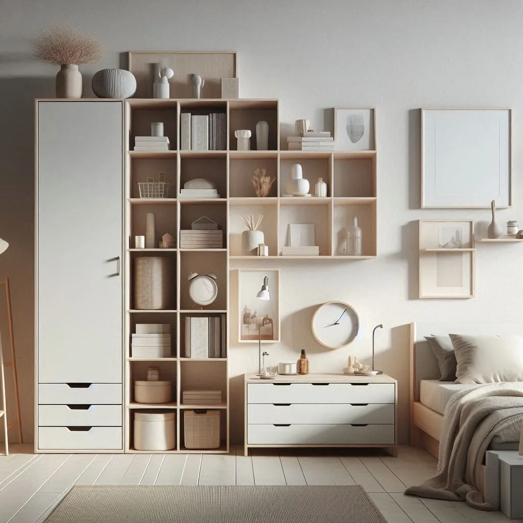Minimize clutter and maintain a sense of calm and orderliness in your minimalist bedroom by decluttering and organizing belongings. Start by purging items that no longer serve a purpose or bring you joy, and then organize the remaining essentials in a thoughtful and intentional manner. Invest in multifunctional storage solutions such as under-bed drawers, floating shelves, and built-in wardrobes to maximize space and minimize visual clutter. Keep surfaces such as nightstands and dressers clear of unnecessary items to create a sense of simplicity and serenity.