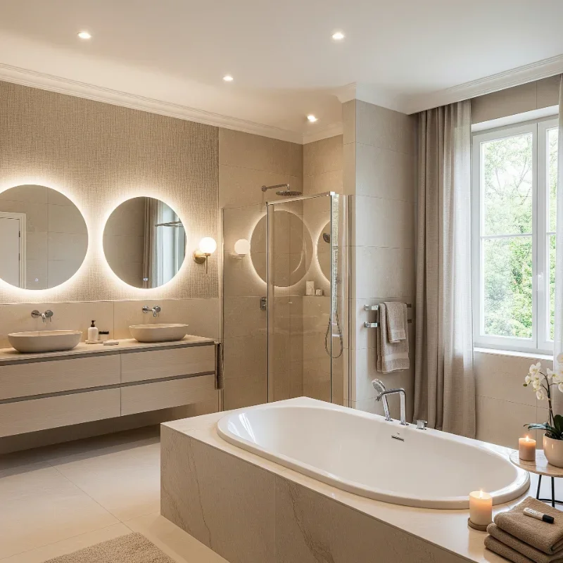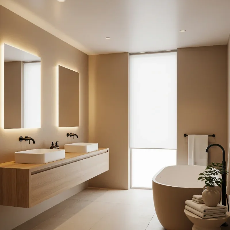 A: Yes! Light beige shades make small bathrooms feel larger and more open naturally.
