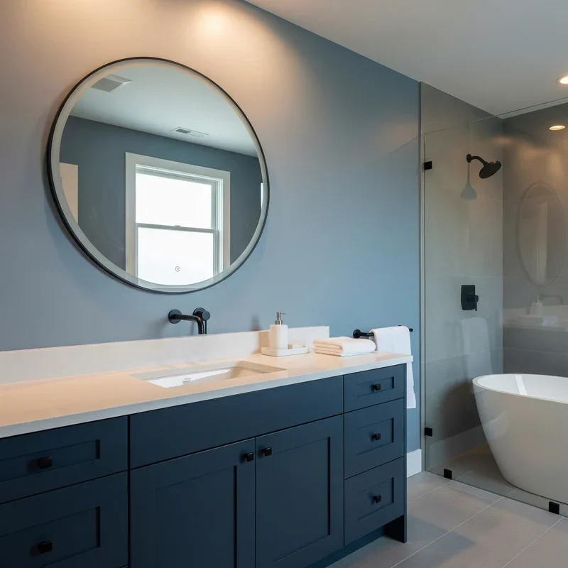 What if your morning routine could feel like a mini vacation by the Mediterranean Sea? That's the magic of a well-designed blue bathroom! Gone are the days when blue bathrooms meant dated powder blue fixtures from the 70s. Today's modern blue bathrooms are sophisticated sanctuaries that blend tranquility with cutting-edge style. Whether you're drawn to the drama of midnight navy or the whisper-soft touch of powder blue, this versatile color has the power to transform your ordinary bathroom into an extraordinary escape. Think about it: blue is the color of both calming seas and endless skies, making it nature's own prescription for relaxation. It's like bringing the best parts of a beach resort right into your home, minus the sand in uncomfortable places! From sleek minimalist designs to bold maximalist statements, blue adapts to any style while maintaining its cool, collected composure. Ready to dive into a world where your bathroom becomes your favorite room in the house? Let's explore these stunning ideas that'll make you want to redecorate immediately!