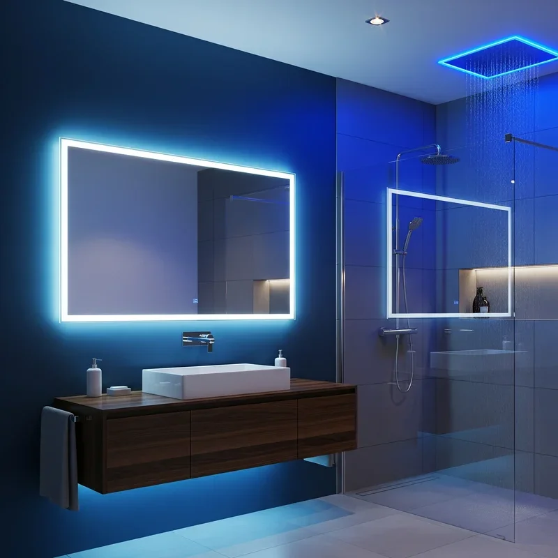 Integrate blue LED lighting to create ambiance that transforms your bathroom's mood with the flip of a switch! Install LED strips under vanities, behind mirrors, or in shower niches for subtle blue glows. Smart LED systems let you adjust intensity and even mix blue with other colors for different moods. Use blue lighting to highlight architectural features or create nightlight effects for late-night visits. The cool blue light can make morning routines feel more energizing and evening baths more relaxing. Waterproof LED options work safely in wet areas while consuming minimal energy. Consider color-changing LEDs that can shift from blue to other hues for versatility. Your lighting becomes an interactive design element that adapts to your needs and preferences.