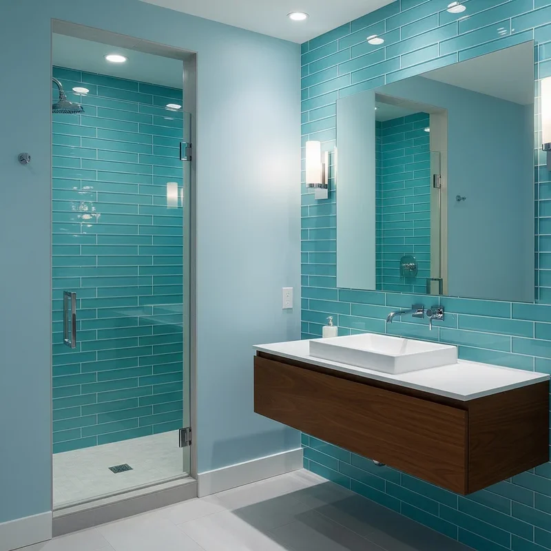 Bring the tranquility of high-end spas home with aqua glass elements that catch and reflect light beautifully! Use aqua glass tiles for shower walls, backsplashes, or accent strips that add luminous color. The translucent quality of glass tiles creates depth and dimension that flat tiles simply can't match. Aqua glass pairs perfectly with natural materials like wood and stone for a balanced, organic feel. The color evokes tropical waters and peaceful pools, instantly making your bathroom feel more resort-like. Mix different sizes of glass tiles for texture or stick with uniform pieces for a sleek, modern look. The reflective surface helps bounce light around, making spaces feel brighter and more open. Your bathroom gains that expensive spa quality that makes every visit feel like a mini retreat.