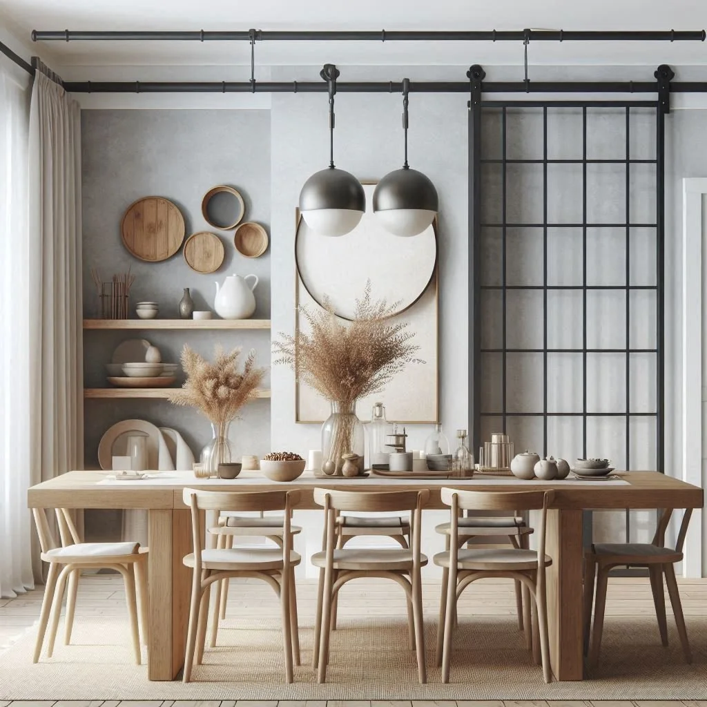 The dining table is the focal point of any dining room, and in modern farmhouse design, it’s all about embracing rustic charm. A reclaimed wood or distressed table adds character and sets the tone for the room’s cozy, lived-in feel. Opt for tables with rough-hewn edges or exposed grain to emphasize the natural, rustic vibe. Whether you choose a chunky, traditional farmhouse-style table or a sleeker, modern version with wooden accents, the key is to keep it organic and authentic. Pair the table with either vintage chairs for a nostalgic touch or modern seating for a balanced, contemporary look. This combination of rustic materials and clean design creates the perfect centerpiece for your farmhouse dining room.