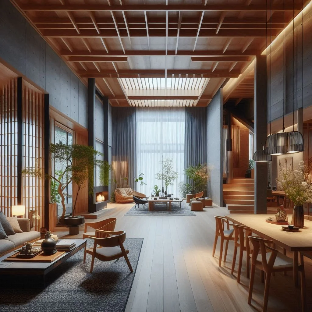 Incorporating natural materials is essential for achieving a modern Japanese look. Common choices include wood, bamboo, and stone, which add warmth and texture while bringing a sense of nature indoors. Wooden elements, like low-profile furniture and exposed beams, create a cozy, organic feel. Bamboo accents, such as screens and flooring, contribute to the minimalist aesthetic and offer durability. Stone, whether used in flooring, countertops, or decorative pieces, adds a grounding element and enhances the tranquil atmosphere. These natural materials seamlessly blend indoor and outdoor environments, fostering a serene, harmonious space that reflects the beauty of nature and aligns with the principles of modern Japanese design.