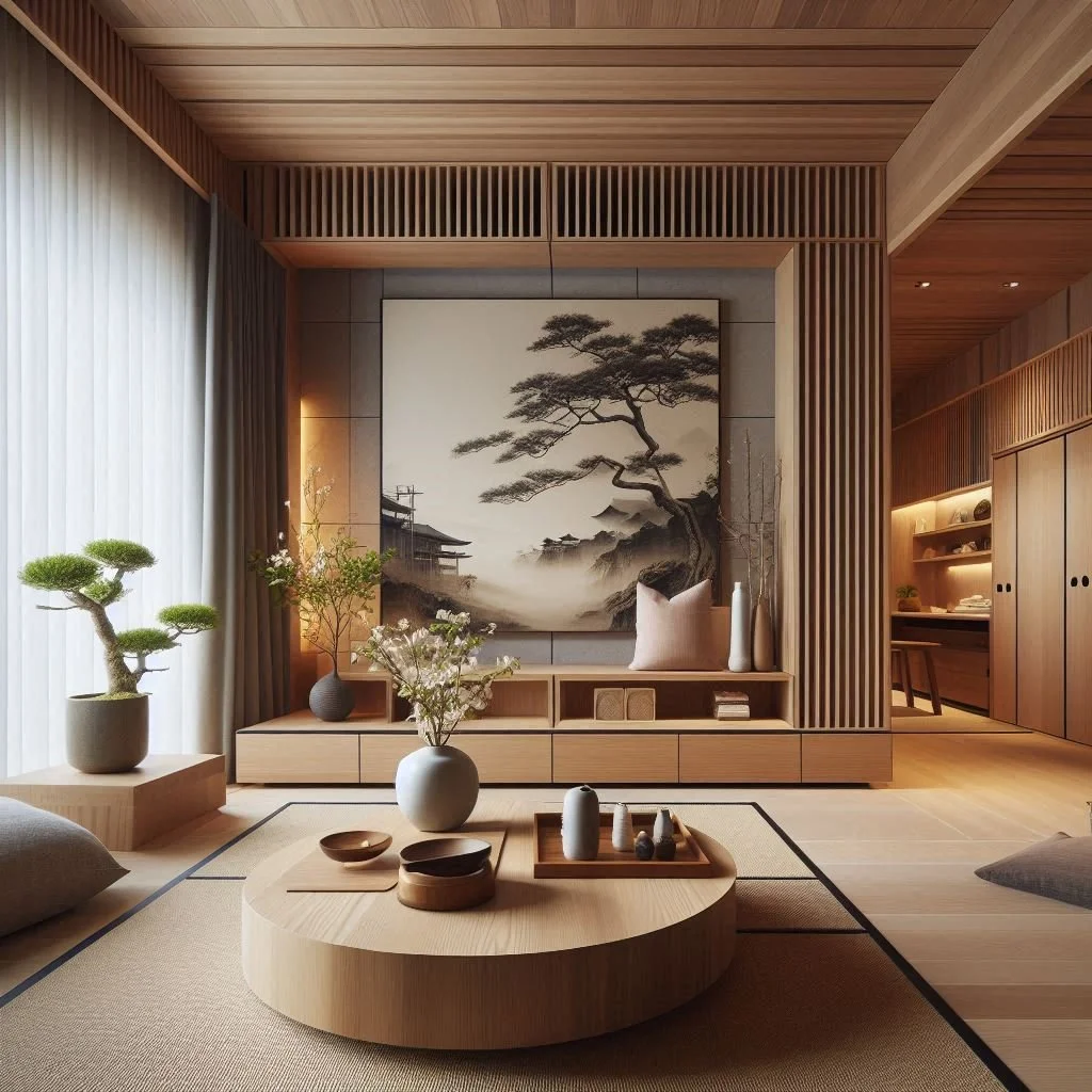 The overall goal of modern Japanese design is to create a calm and serene atmosphere. Every element, from the color palette to the furniture, should contribute to a sense of peace and relaxation. Use neutral tones and natural materials to foster a soothing environment. Choose furniture with clean lines and a minimalist aesthetic, ensuring each piece adds to the tranquility of the space. Incorporate elements like tatami mats, soft lighting, and indoor plants to enhance the serene ambiance. By prioritizing comfort and tranquility in your design choices, you can create a harmonious and inviting space that reflects the essence of modern Japanese design.