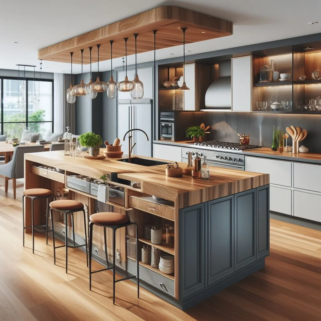 Elevate your kitchen island beyond mere countertop functionality; turn it into a dynamic, multifunctional space that serves as the heart of culinary innovation. Integrate a built-in sink for convenient food preparation and cleanup. Consider adding a cooktop to transform your island into a cooking hub where culinary magic unfolds. Take it a step further by incorporating seating, creating a social hub for family and guests. Your kitchen island becomes more than just a surface; it becomes a versatile, interactive space where cooking, socializing, and dining converge, making it the epicenter of your kitchen's functionality and aesthetic appeal.