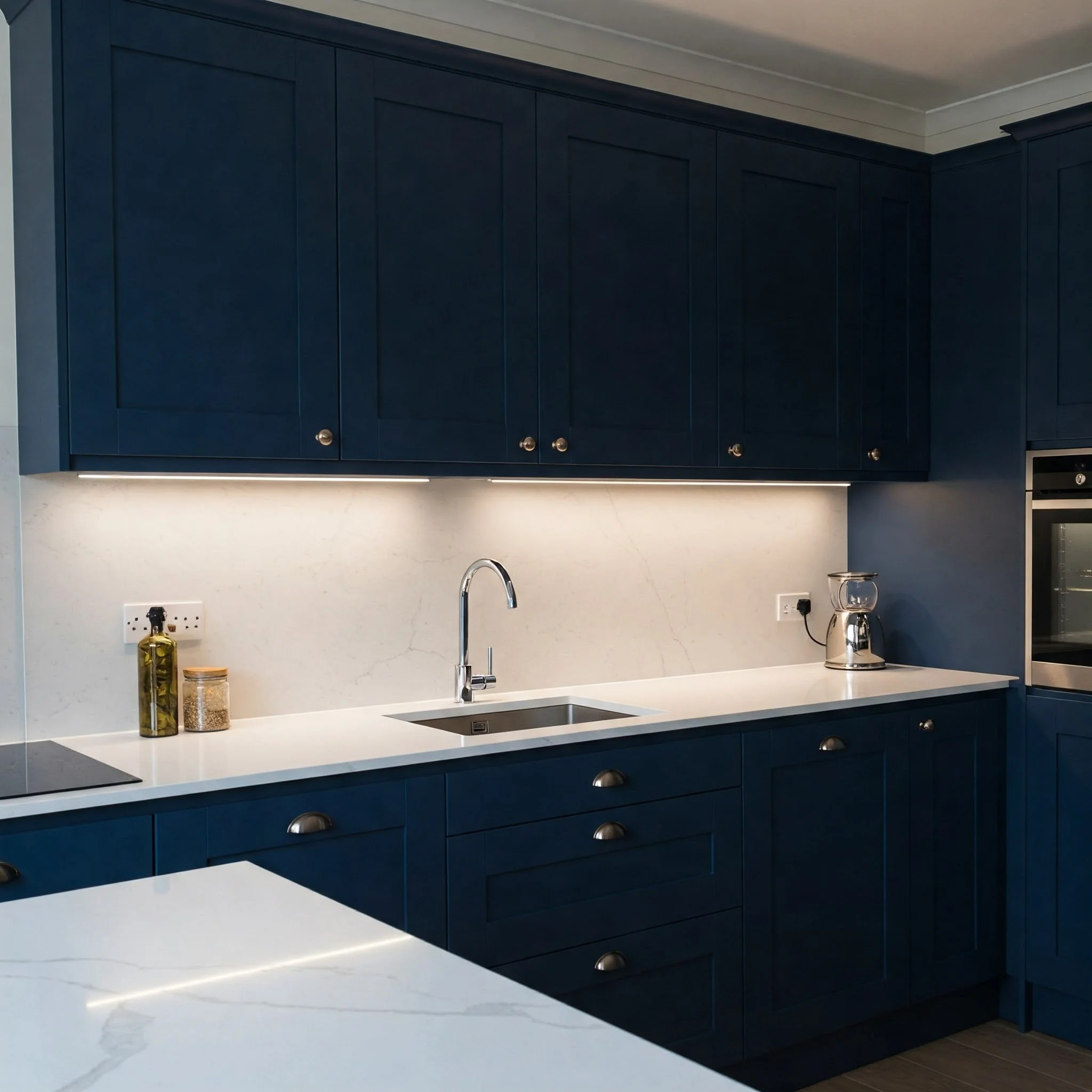 3. How do I protect high-gloss navy cabinets from fingerprints?