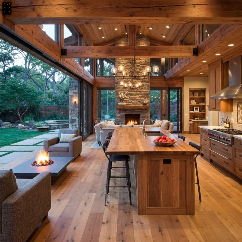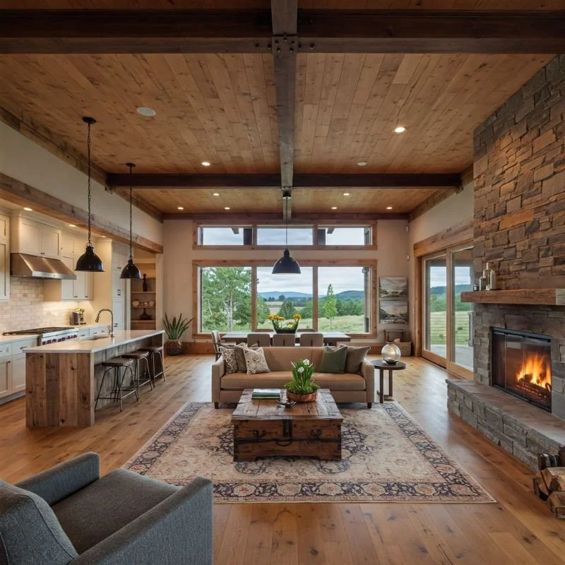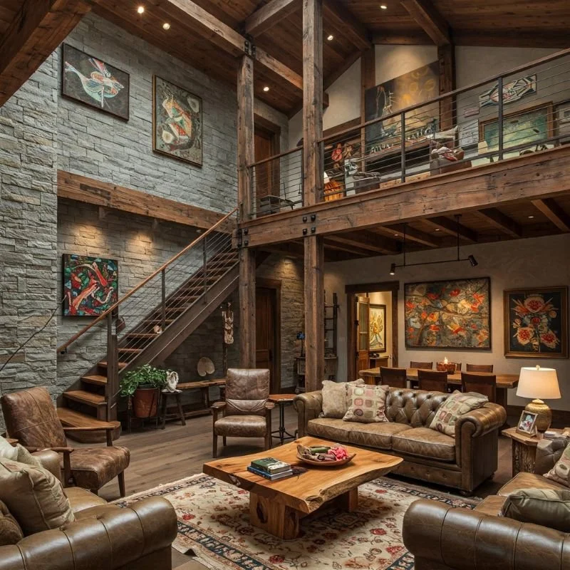 Modern rustic style blends contemporary design elements with natural, earthy materials like reclaimed wood, stone, and vintage accents. This fusion creates a cozy yet sophisticated environment that balances modern minimalism with rustic warmth.