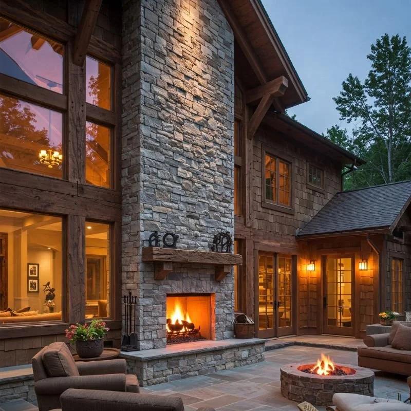 A stone fireplace can serve as the heart of a modern rustic home, offering a captivating focal point that exudes both luxury and comfort. Imagine a robust, natural stone hearth that anchors your living room, its rugged texture contrasting beautifully with sleek, modern furnishings. Stone fireplaces not only provide warmth on chilly evenings but also become a statement piece that draws the eye and sparks conversation. They evoke the nostalgia of old-world charm while integrating seamlessly with contemporary design elements. The interplay between the raw beauty of stone and the clean lines of modern architecture creates an atmosphere of refined coziness. It’s like having a living piece of art that transforms everyday moments into a sensory experience—inviting you to relax, gather with loved ones, and appreciate the timeless allure of natural materials.