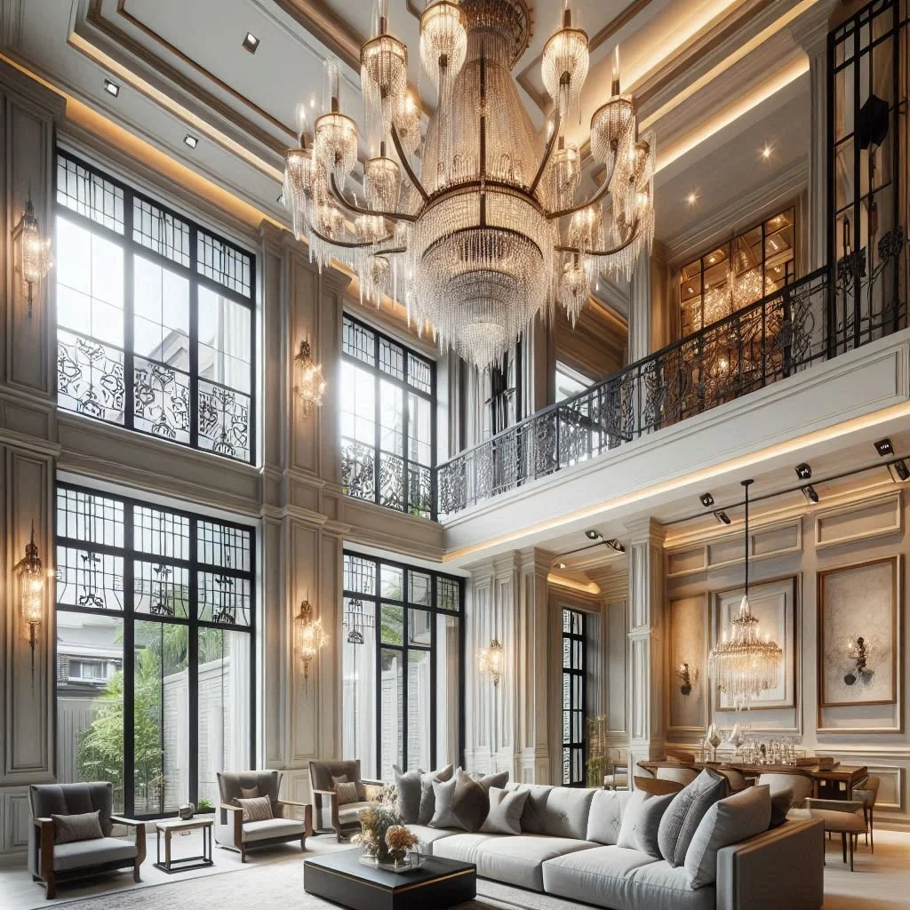 While not essential, chandeliers add a touch of elegance. Choose a modern or minimalist chandelier to complement the space.