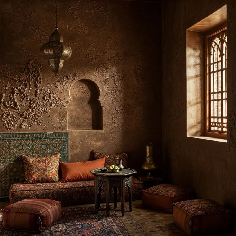 Moroccan décor is all about evoking warmth, so think of your home as a canvas ready to be painted in desert-inspired shades. Rich reds, earthy browns, and burnt oranges often mingle with deep blues or vivid purples, creating a dynamic contrast. You might start with a feature wall in a cinnamon hue or add an accent nook painted in a bold maroon. Don’t shy away from layering these colors—Moroccan interiors thrive on eye-catching depth. Remember that warm tones have a way of making your space feel cozy yet dramatic, almost like the sun setting over the Sahara. Complement these shades with understated neutrals, like cream or taupe, to prevent visual overload. Before you know it, your home will transform into a vibrant oasis, where every corner exudes inviting energy.