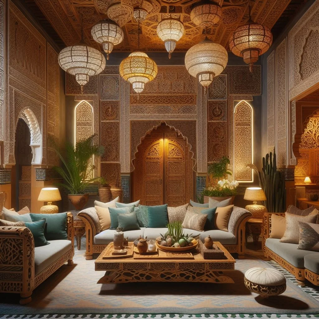 Moroccan design often features vibrant color palettes with rich jewel tones such as deep blues, emerald greens, and burnt oranges. These colors are typically complemented by earthy neutrals such as terracotta, sand, and ivory, creating a harmonious and inviting atmosphere.