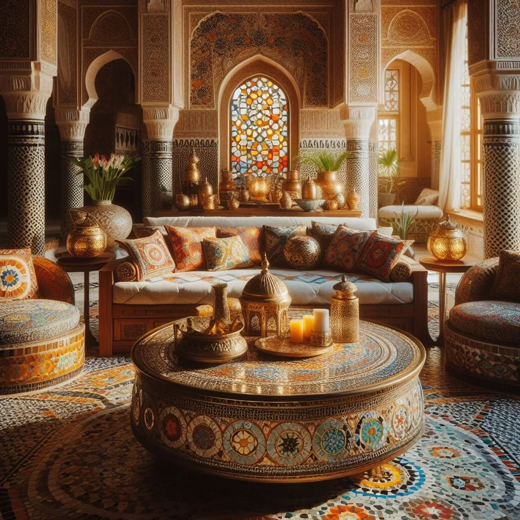 Create intimate seating areas with cozy floor cushions, poufs, and low tables inspired by traditional Moroccan seating arrangements. Drawing inspiration from the rich cultural heritage of Morocco, these seating arrangements foster a sense of warmth and hospitality, encouraging relaxation and socializing among guests. Picture guests reclining on plush floor cushions adorned with intricate patterns, their conversations flowing freely as they lounge in comfort. Low tables, adorned with ornate designs, provide the perfect surface for sharing refreshments and snacks, adding to the convivial atmosphere. Whether nestled in a corner of your living room or arranged on a sun-drenched patio, these intimate seating areas serve as inviting retreats where cherished moments are shared and memories are made.
