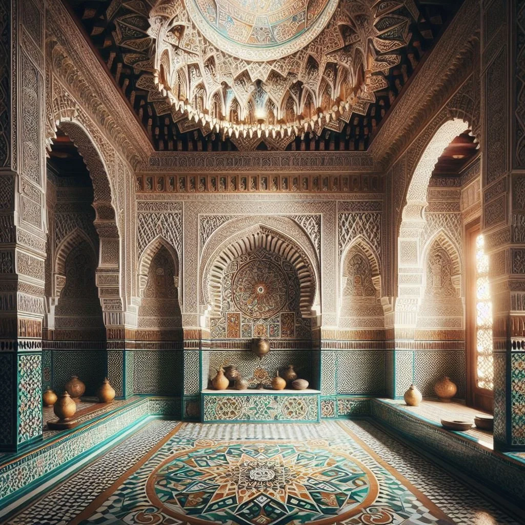 Iconic Moroccan architectural features include intricately carved arches, ornate tilework, and courtyard gardens with lush vegetation and soothing water features. These features are inspired by the country's diverse cultural heritage and Islamic architectural traditions.