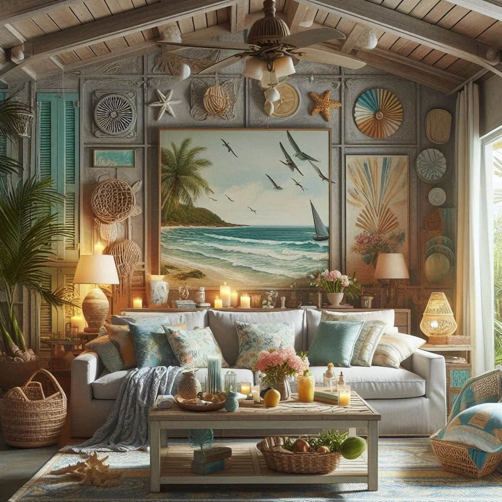 Embrace an eclectic mix of textures, colors, and decor pieces that evoke a laid-back and effortless beachcomber aesthetic.