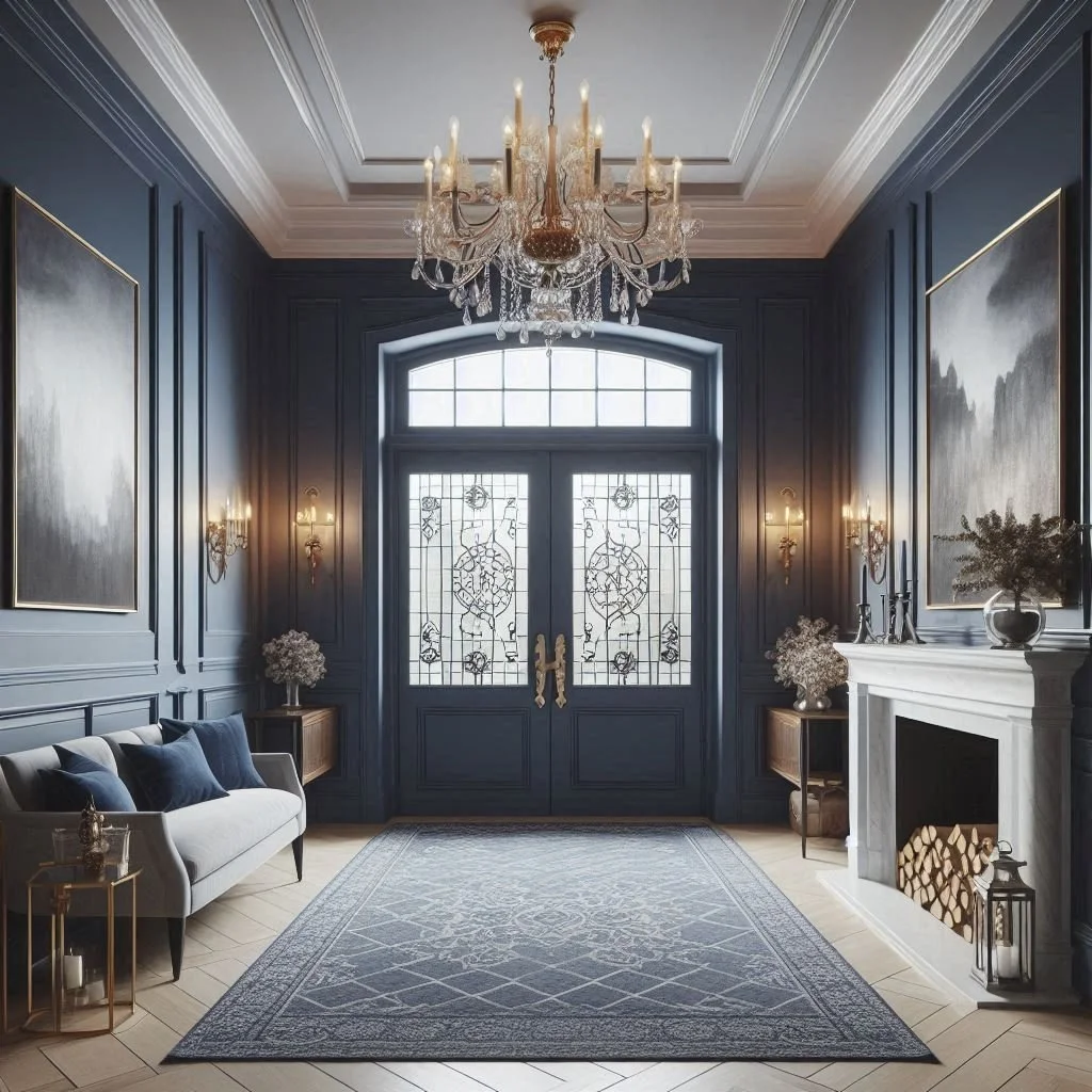 Set the tone for your home with a striking navy blue wall in your entryway, creating an immediate sense of elegance and sophistication. The deep, rich hue of navy serves as a bold backdrop, making the space feel inviting and grounded. To enhance the welcoming atmosphere, pair the navy wall with oversized mirrors or large pieces of artwork. Mirrors not only reflect light, brightening the entryway but also make the space feel larger and more open. Artwork can add personality and create a focal point, making the area feel uniquely yours. The combination of navy, mirrors, and artwork adds depth and visual interest to your entryway, ensuring that guests are greeted by a stylish and warm first impression. This design approach sets the tone for the rest of your home.