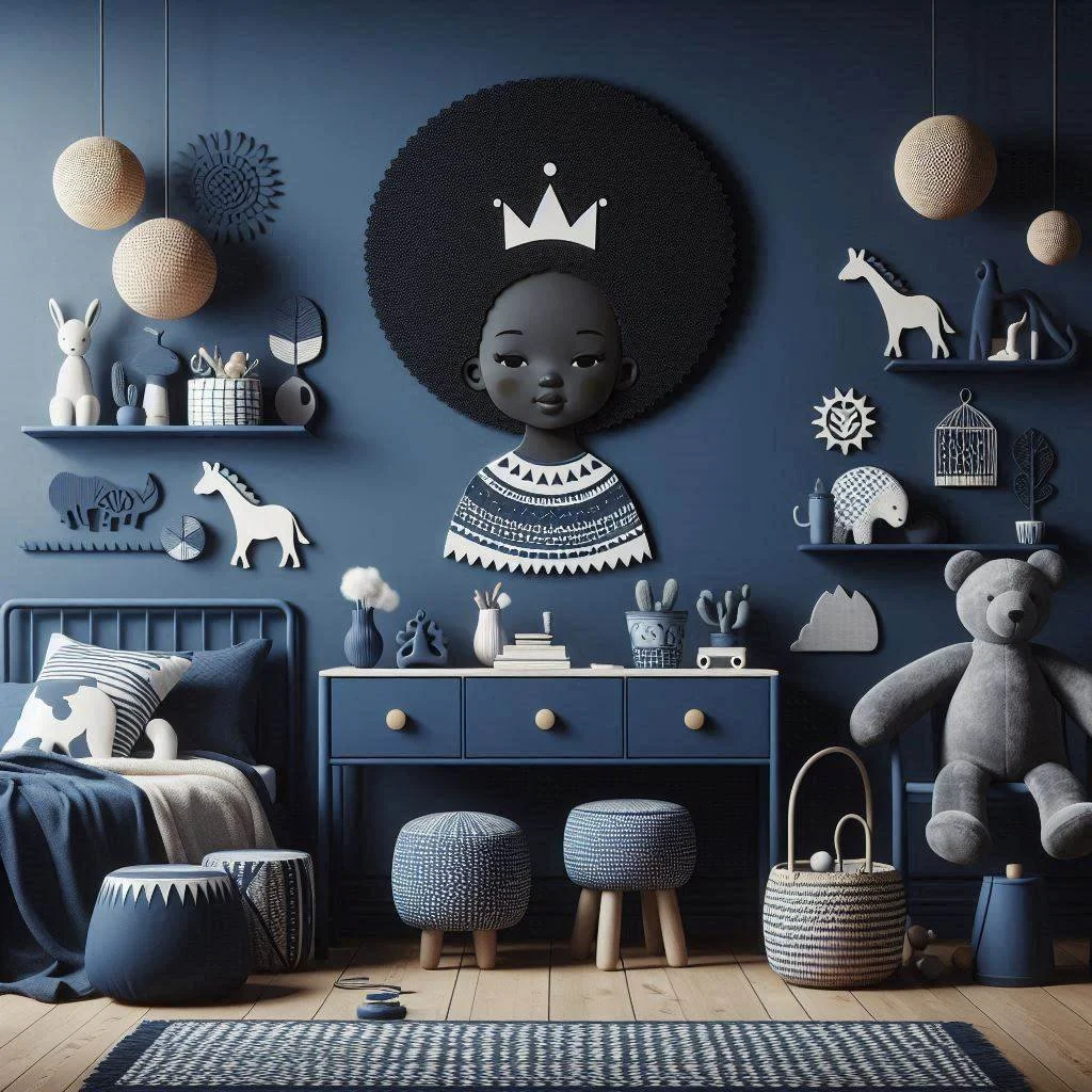 Navy blue isn’t just for adult spaces—it can be a great choice for kids' rooms too! When paired with vibrant decor, navy walls create a dynamic and fun atmosphere that still feels cozy and inviting. To maintain a playful vibe, complement the navy walls with bright, energetic colors like lime green bean bags or sunny yellow bedding. These bold accents provide a cheerful contrast to the deep navy, balancing sophistication with whimsy. The combination of navy and vibrant colors can stimulate creativity and energy, making it a perfect choice for a child’s bedroom or play area. To keep the room feeling light and airy, use lighter furniture and accessories, which will help prevent the dark navy from overpowering the space while still creating a striking, fun environment.