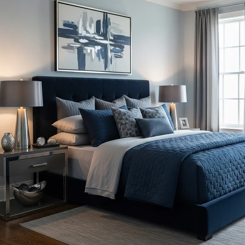 Transform your bedroom with these 15 elegant navy blue and grey design ideas. Create sophisticated spaces that blend comfort with timeless style!